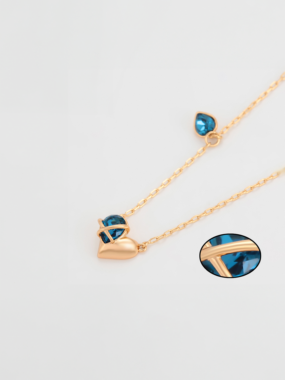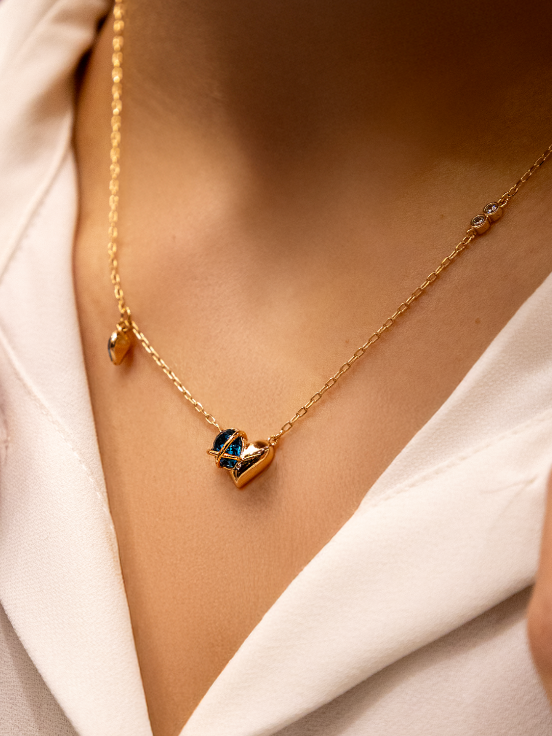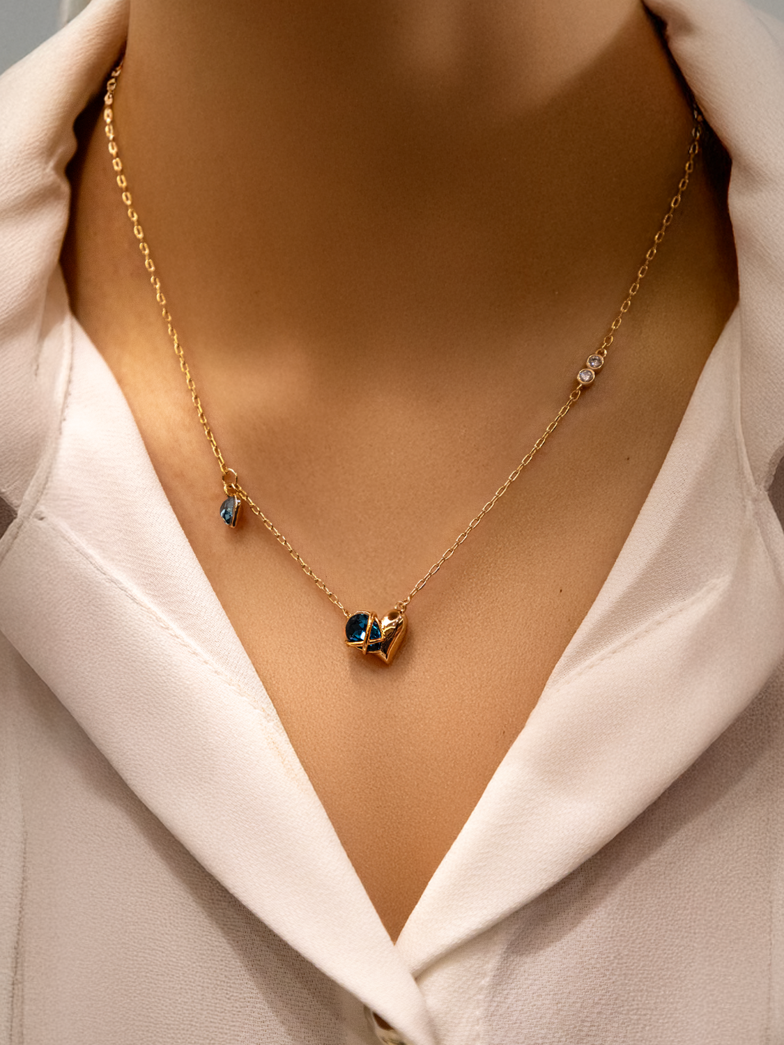 Αναδείξτε την κομψότητα σας με το Κολιέ Ocean Heart , ένα κολιέ που συνδυάζει τη μοντέρνα απλότητα με μια πινελιά ρομαντισμού. Κατασκευασμένο από οικολογικό χαλκό σε απόχρωση 18Κ χρυσού, αυτό το κολιέ διαθέτει ένα μπλε κρύσταλλο σε σχήμα καρδιάς (8*6 mm) που αιχμαλωτίζει το φως, προσδίδοντας μια γοητευτική λάμψη. Η διακριτική αλυσίδα και οι επιπλέον μικρές λεπτομέρειες καθίστανται το κολιέ αυτό ιδανικό για καθημερινή χρήση, προσφέροντας έναν εκλεπτυσμένο αέρα σε κάθε εμφάνιση.