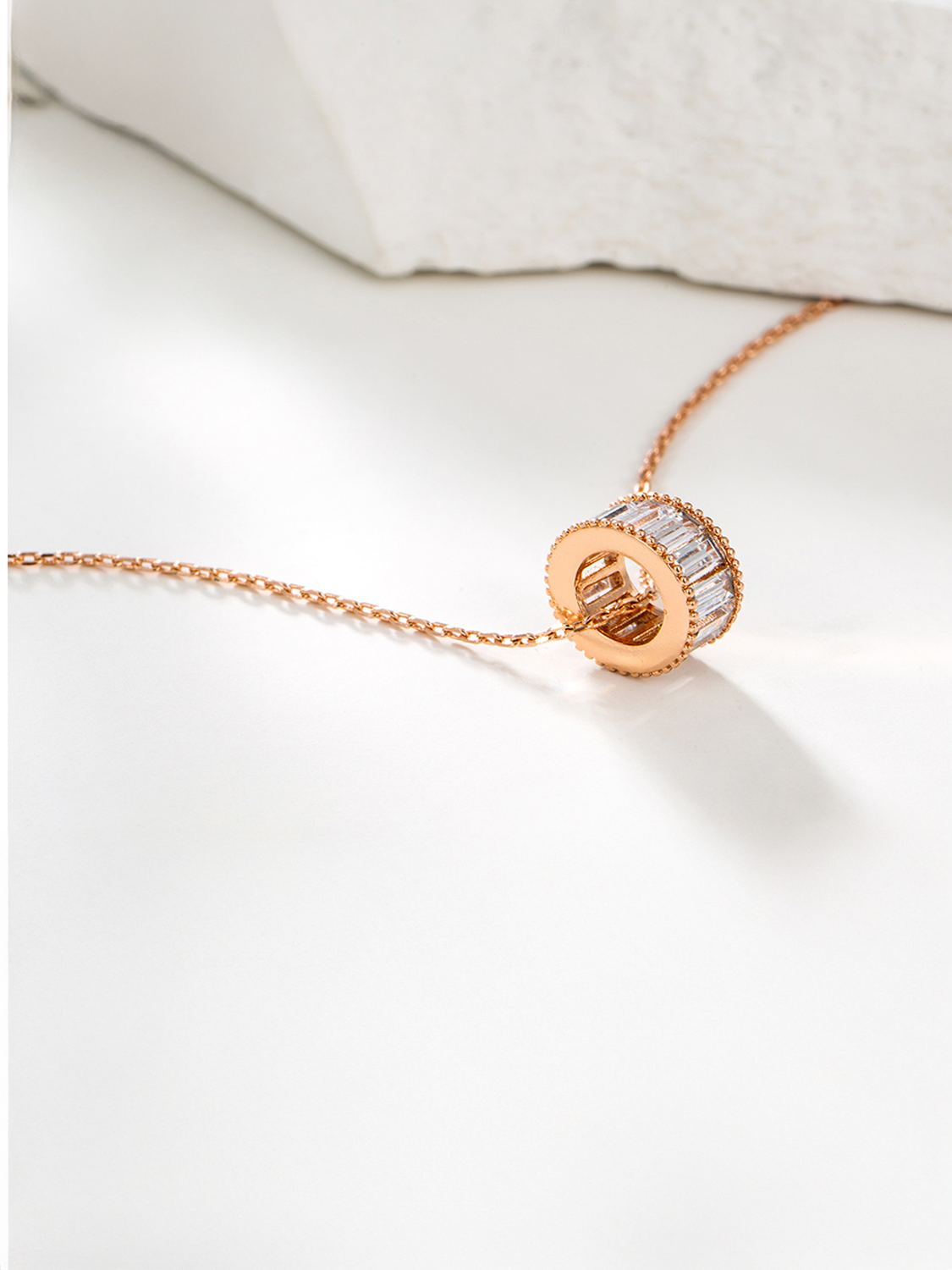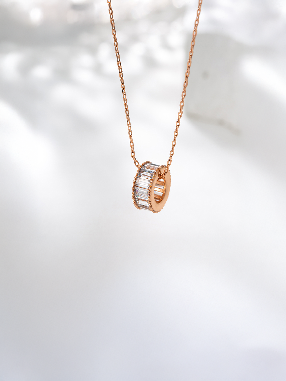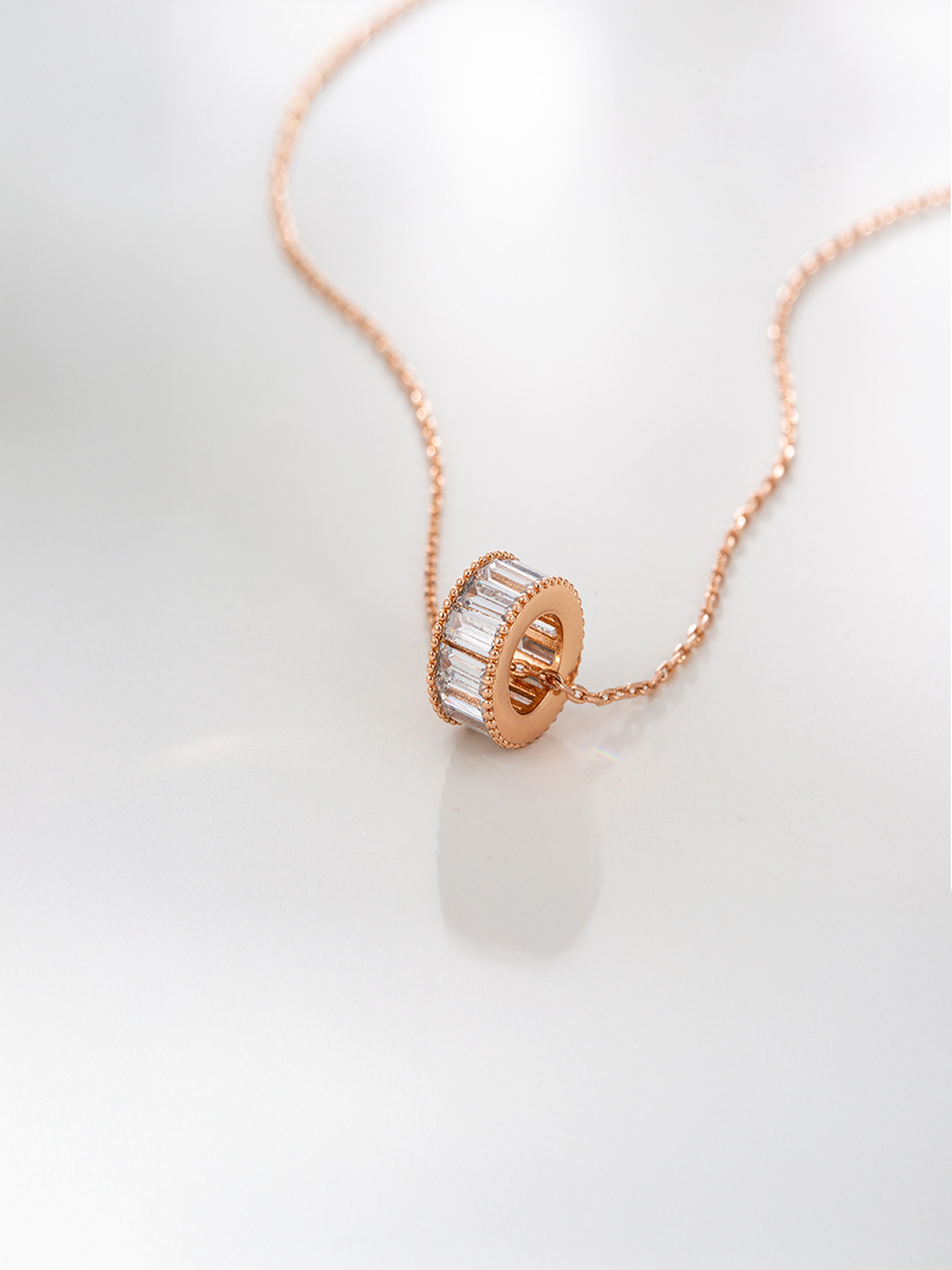 Το Radiant Wheel είναι ένα υπέροχο κολιέ που εντυπωσιάζει με τον κομψό και μοντέρνο σχεδιασμό του. Κατασκευασμένο από οικολογικό χαλκό σε χρώμα ροζ χρυσό, διαθέτει ένα κυκλικό κεντρικό μοτίβο που είναι διακοσμημένο με λαμπερά συνθετικά ζιργκόν. Το ελαφρύ του βάρος και ο ρομαντικός χαρακτήρας του το καθιστά ιδανικό για καθημερινές αλλά και βραδινές εμφανίσεις.