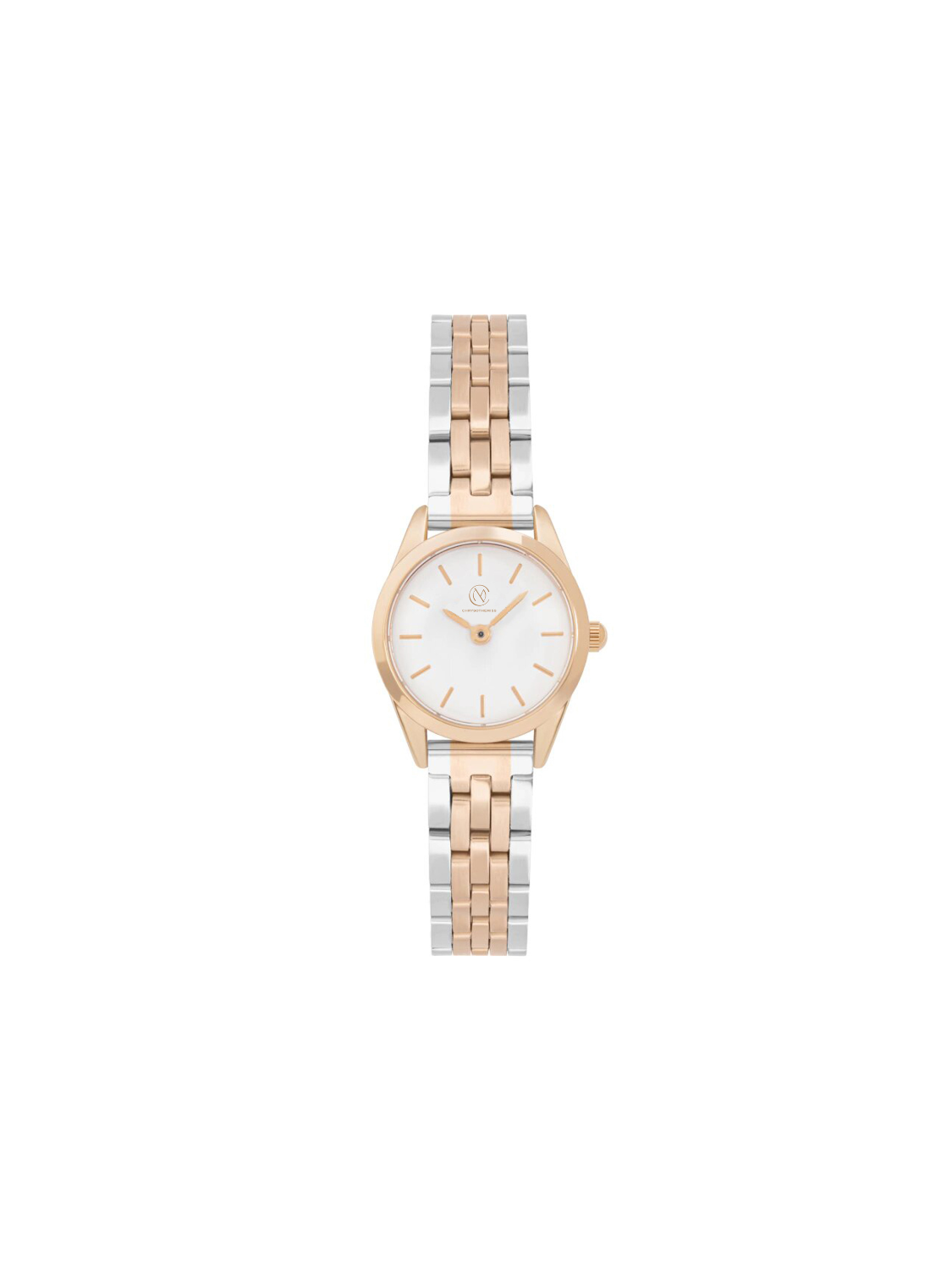 Το Evadne αποπνέει διαχρονική φινέτσα και ήρεμη δύναμη. Το μικρό του μέγεθος (24mm) προσδίδει μια κλασική και κομψή αύρα, ενώ το δίχρωμο μπρασελέ από ανοξείδωτο ατσάλι – σε ροζ χρυσό και ασημί – δημιουργεί μια εκλεπτυσμένη αντίθεση. Το λευκό του καντράν και το σχήμα του το καθιστά ιδανικό για καθημερινή χρήση αλλά και για κομψές εμφανίσεις. Συνδυάζει minimal αισθητική με ρομαντική αύρα.