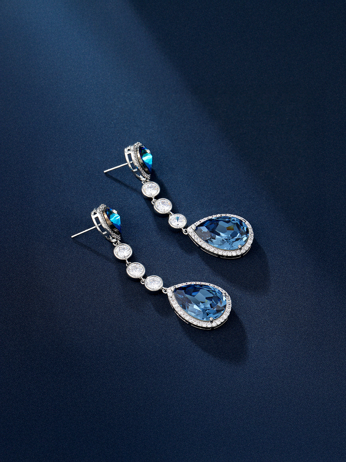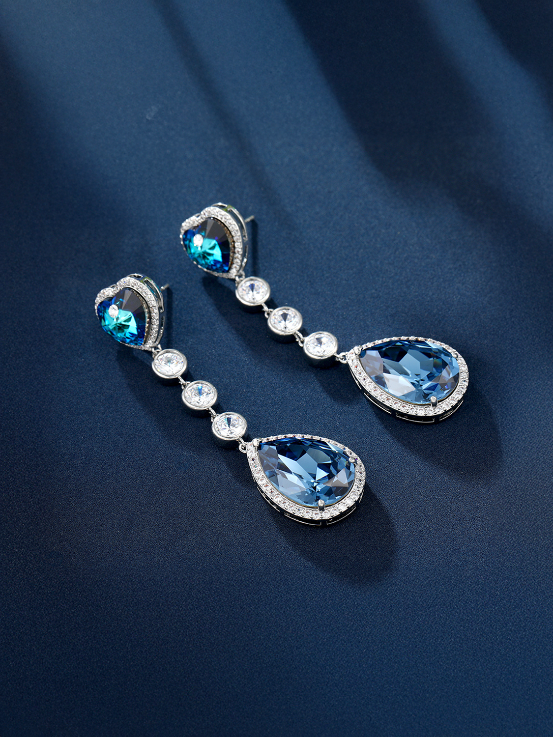 Αναδείξτε τη θηλυκότητά σας με τα Aphrodite's Tears, ένα εκθαμβωτικό ζευγάρι σκουλαρικιών εμπνευσμένο από τη θεά του έρωτα. Με σχέδιο καρδιάς σε μπλε αποχρώσεις και δάκρυ από βαθύ μπλε κρύσταλλο, αυτά τα κρεμαστά σκουλαρίκια προσθέτουν πολυτέλεια σε κάθε εμφάνισή σας