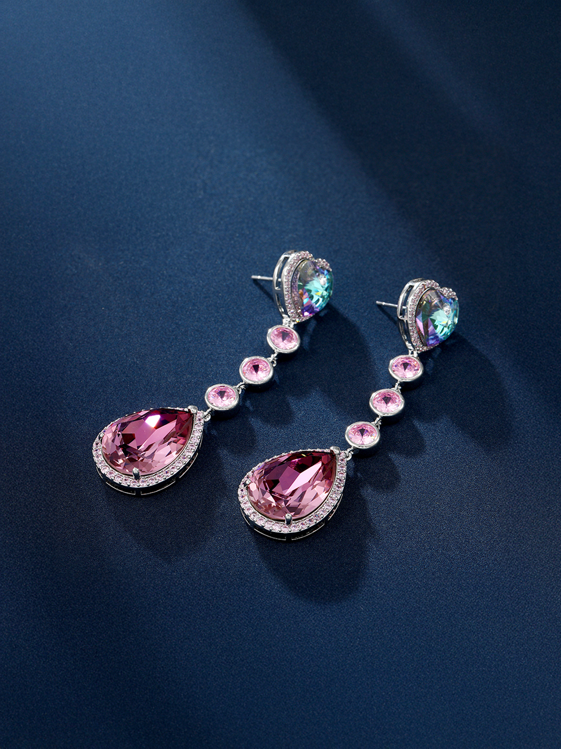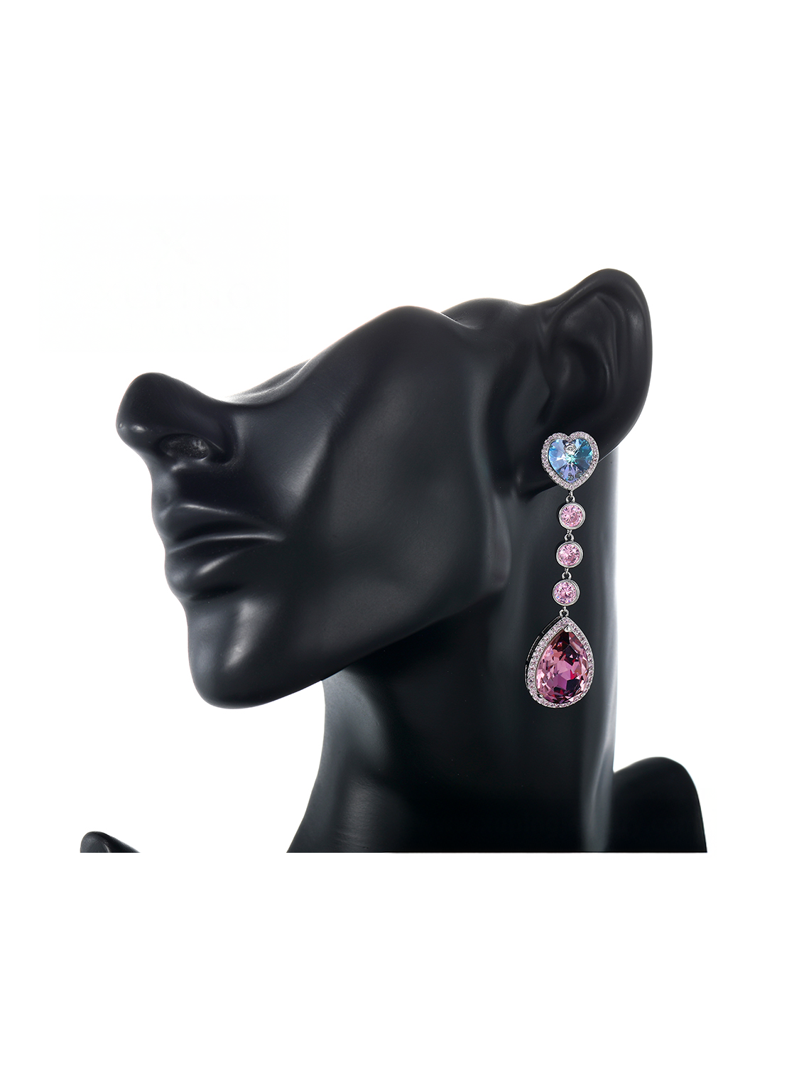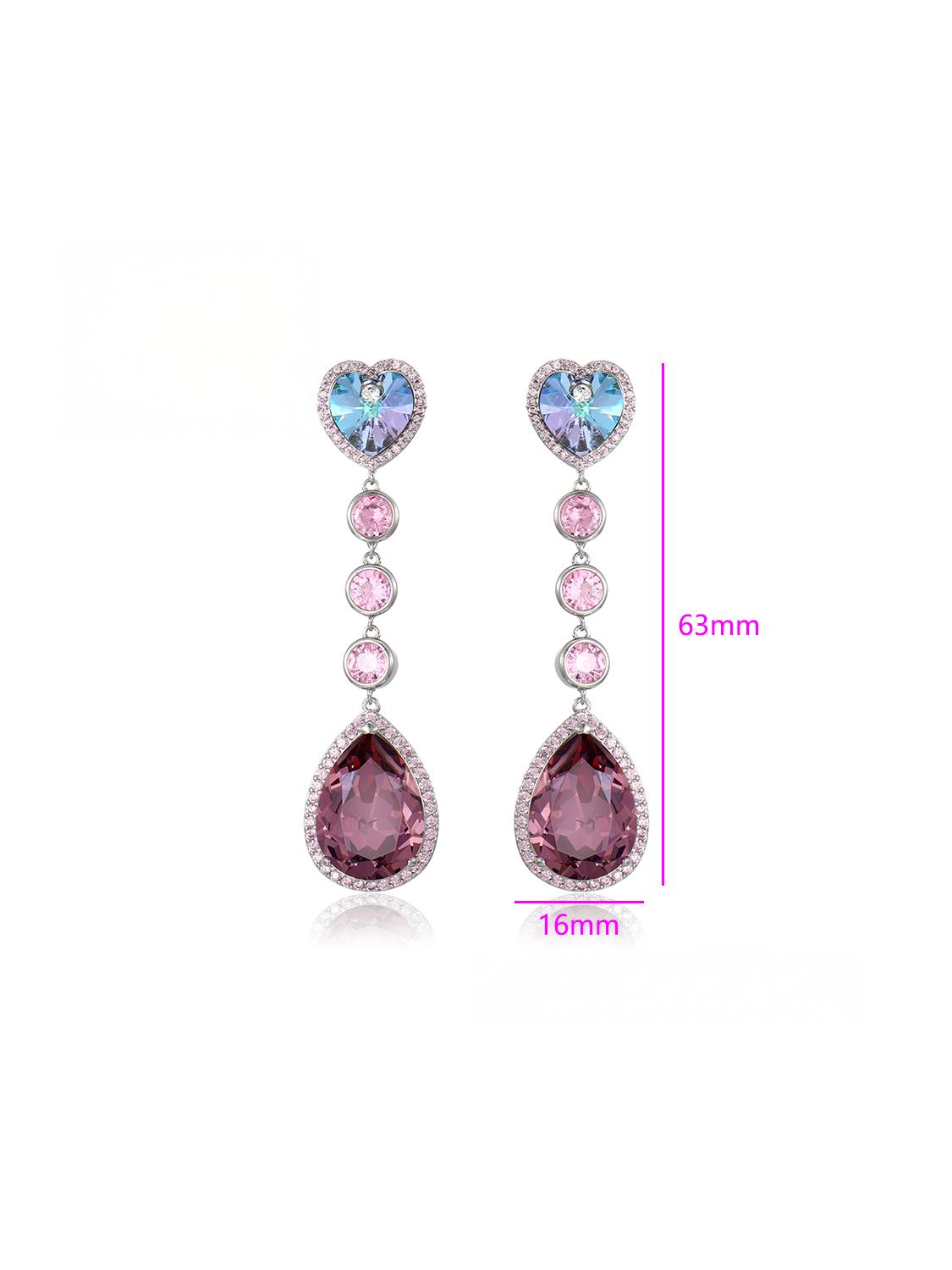 Αναδείξτε τη φινέτσα και τη θηλυκότητα σας με τα Aurora Blush Drops, εντυπωσιακά σκουλαρίκια με πολυτελή εμφάνιση. Στο επάνω μέρος ξεχωρίζει μια λαμπερή κρυστάλλινη καρδιά σε τόνους του μπλε και λιλά, ενώ καταλήγουν σε μια μεγαλοπρεπή σταγόνα από μοβ κρύσταλλο, πλαισιωμένη από ροζ στρας. Ένα εκλεπτυσμένο και ρομαντικό σχέδιο που μαγνητίζει τα βλέμματα.