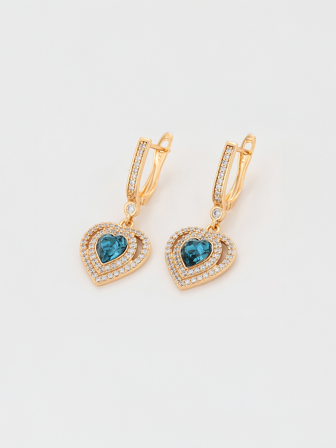 Τα Blue Heart Sparkle είναι ένα ζευγάρι εκθαμβωτικά σκουλαρίκια σε σχήμα καρδιάς που αποπνέουν ρομαντισμό και πολυτέλεια. Το κεντρικό στοιχείο είναι ένας σαγηνευτικός γαλάζιος κρύσταλλος σε σχήμα καρδιάς, πλαισιωμένο από δύο σειρές λαμπερών λευκών στρας που δείχνουν βάθος και λάμψη. Η χρυσαφένια επίστρωση 18Κ χρυσό χρώμα και οι μικρές λεπτομέρειες στο κούμπωμα προσθέτουν κομψότητα και διαχρονικότητα. Ιδανικά για βραδινές εξόδους, ρομαντικά ραντεβού ή ειδικές περιστάσεις.