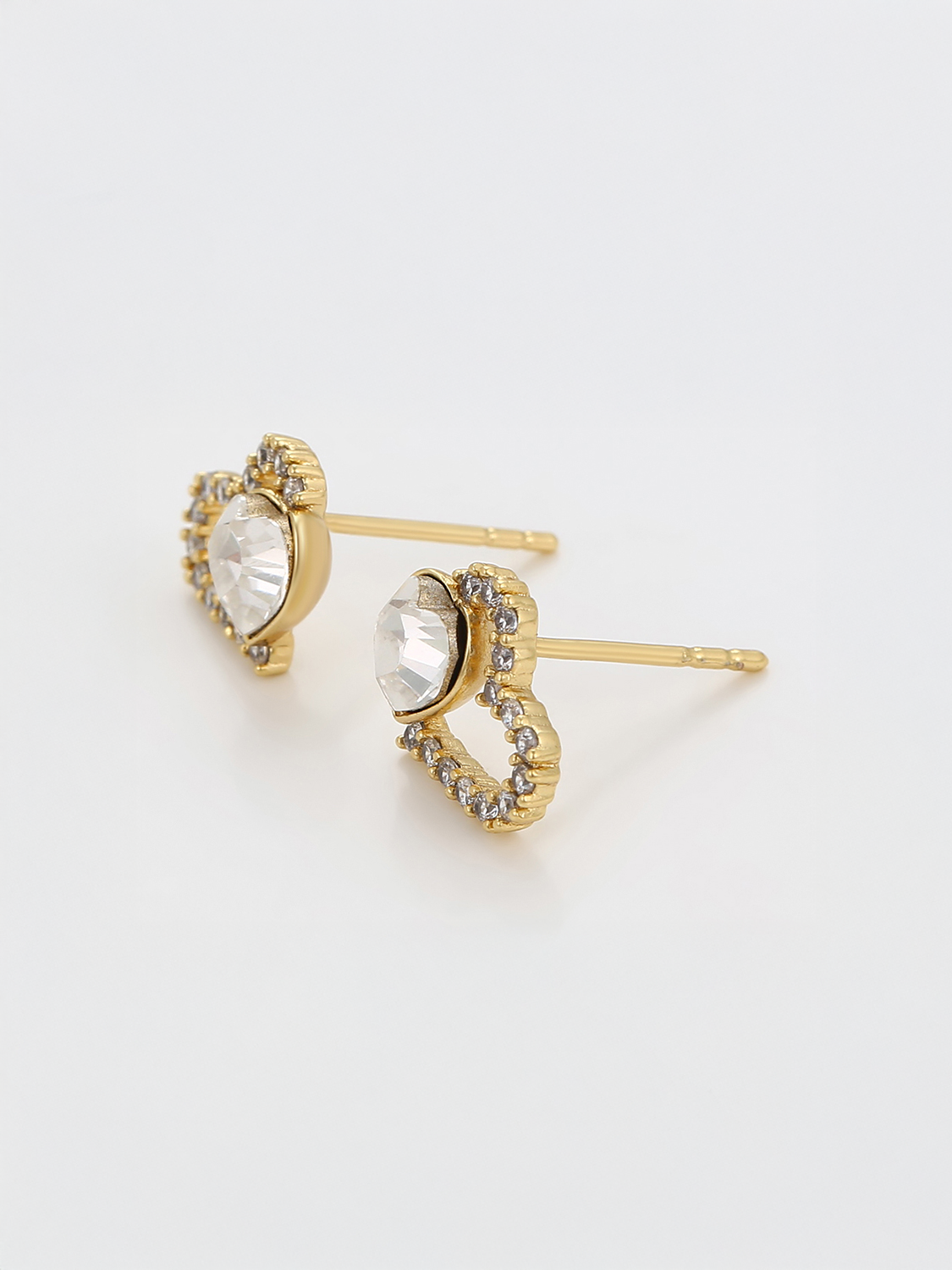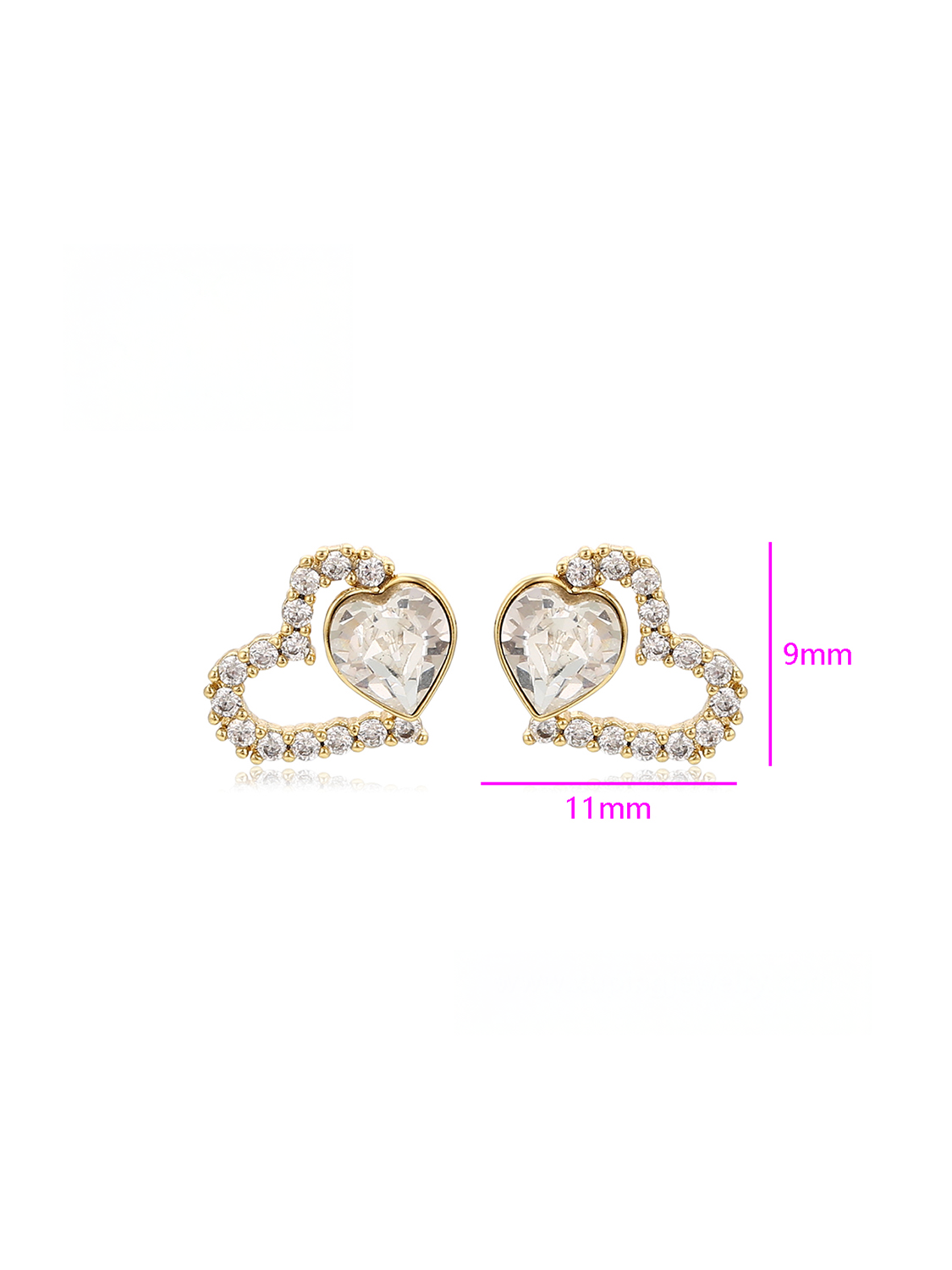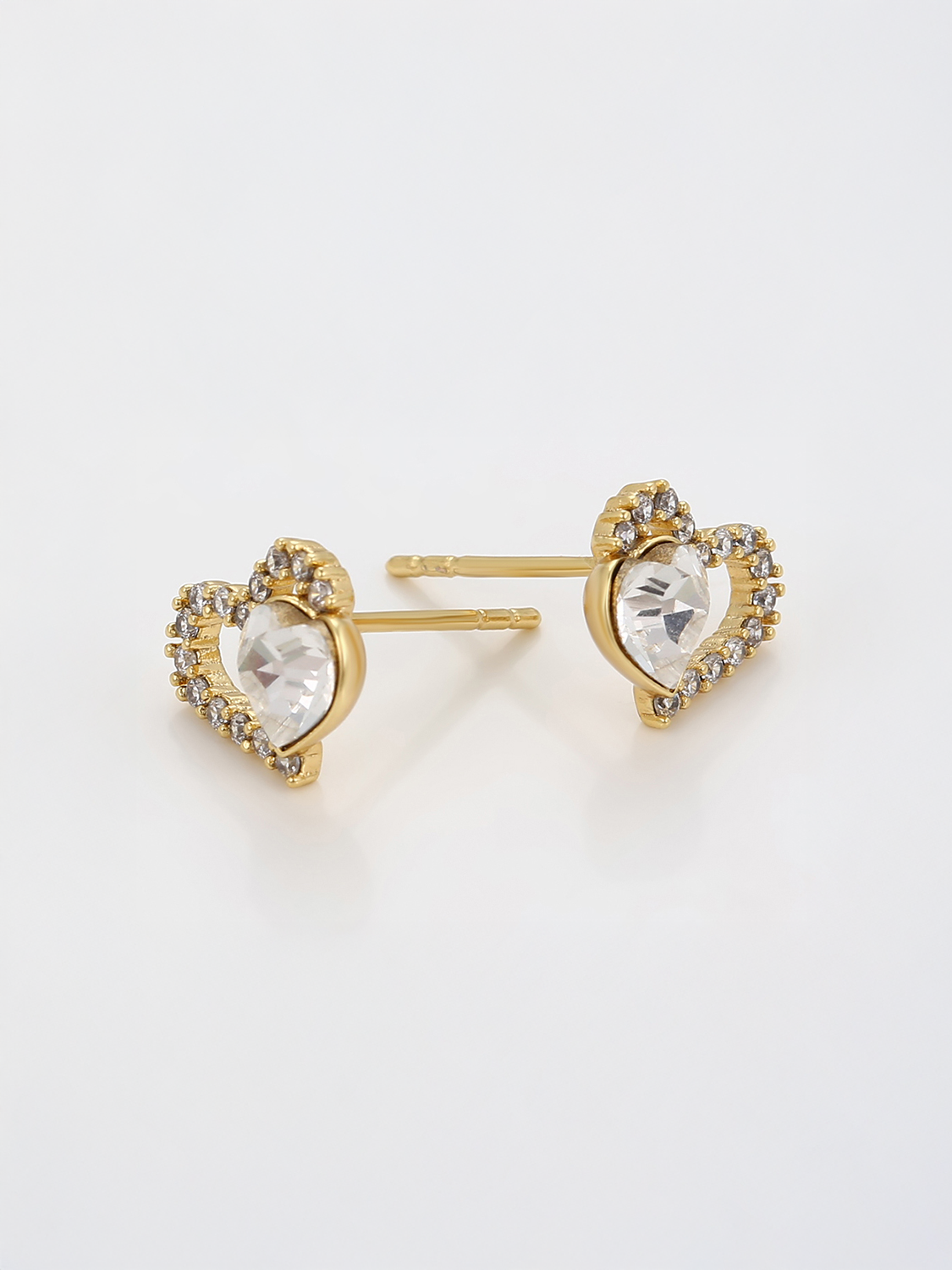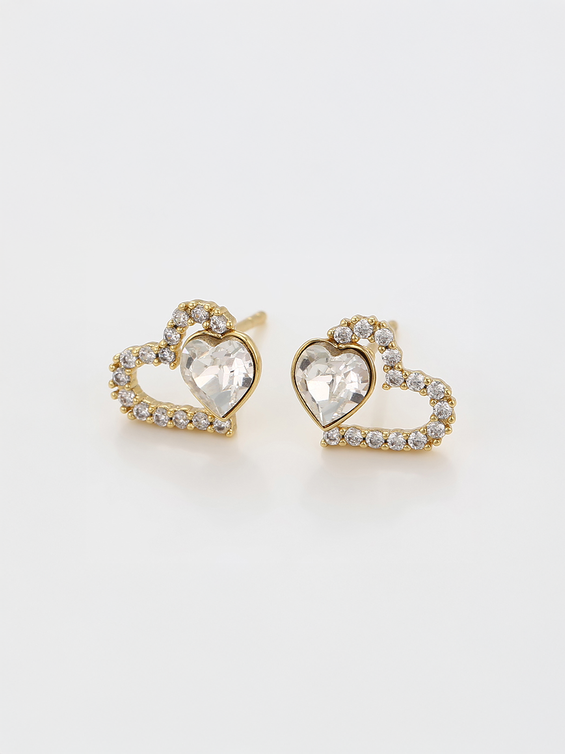 Το Crystal Heart είναι ένα κομψό ζευγάρι σκουλαρίκια από οικολογικό χαλκό με επίστρωση 18Κ χρυσό χρώμα. Το σχέδιό τους σε σχήμα καρδιάς συνδυάζει έναν λαμπερό κεντρικό κρύσταλλο και μικρότερους περιμετρικούς, δημιουργώντας ένα εκλεπτυσμένο και ρομαντικό αποτέλεσμα. Ιδανικά για γυναίκες που αναζητούν ένα λαμπερό αξεσουάρ για κάθε περίσταση.