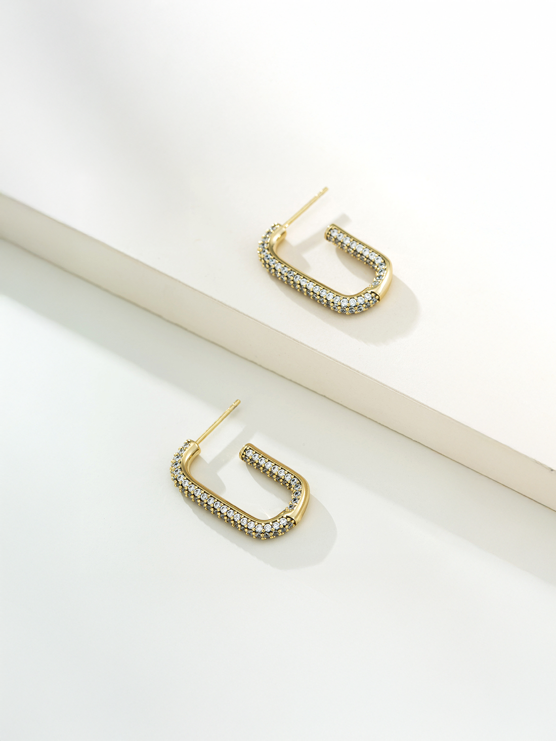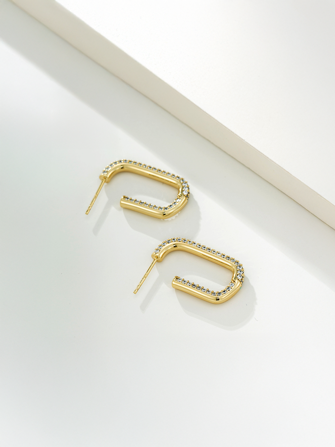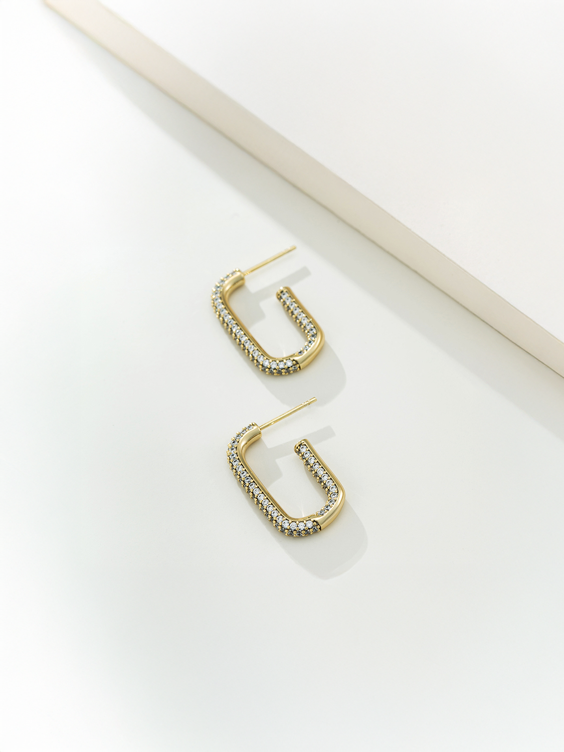 Το Dazzling Grace είναι ένα κομψό και μοντέρνο ζευγάρι σκουλαρίκια που αποπνέει φινέτσα και λάμψη. Κατασκευασμένα από οικολογικό χαλκό σε απόχρωση 14Κ χρυσού, αυτά τα σκουλαρίκια διαθέτουν μοναδικό σχεδιασμό σε σχήμα τετραγωνικού τόξου, διακοσμημένα με συνθετικά ζιργκόν. Με την ελαφριά κατασκευή και την λεπτομυμένη εμφάνιση, αποτελούν τις επιλογές και τις ξεχωριστές καθημερινές εμφανίσεις.