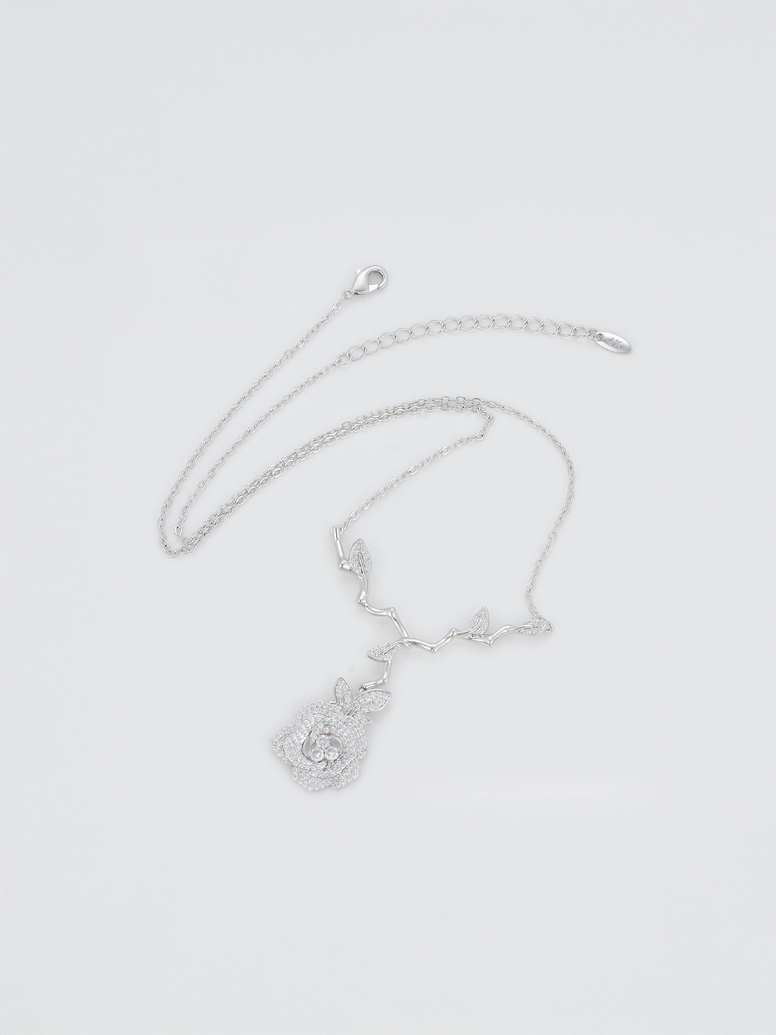 Το Crystal Rose είναι ένα εκλεπτυσμένο κολιέ που συνδυάζει την κομψότητα και την απλότητα. Κατασκευασμένο από επιπλατινωμένο οικολογικό χαλκό, αυτό το κολιέ διαθέτει ένα σχέδιο ροζέτας, διακοσμημένο με λαμπερά συνθετικά ζιργκόν. Το μοναδικό του σχέδιο με φύλλα και λουλούδι αναδεικνύει τη φυσική ομορφιά, προσθέτοντας μια πινελιά φινέτσας σε κάθε εμφάνιση. Με μήκος 400 mm (+50 mm επέκταση) και βάρος 6,34 γραμμαρίων, είναι το ιδανικό αξεσουάρ για κομψές περιστάσεις.