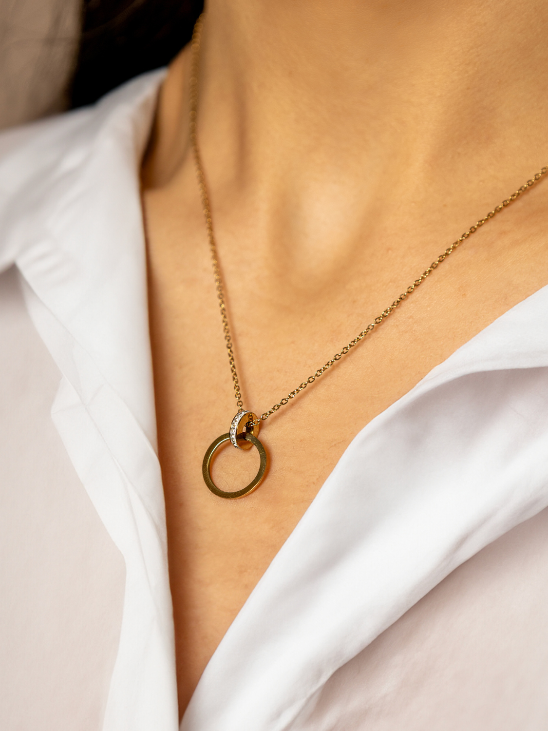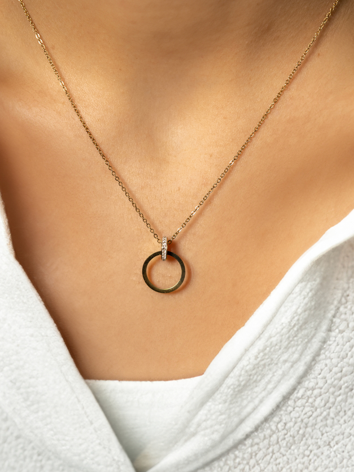 Αντλώντας έμπνευση από το μαγικό φως του βορείου ουρανού, το κολιέ 'Aurora Halo' προσκαλεί τη μαγεία της φύσης στην κοσμηματοθήκη σας. Ο εντυπωσιακός μεταλλικός κρίκος που θεωρείται αριστοτεχνικά στη λεπτή αλυσίδα, αποτελεί μια υπενθύμιση των εκθαμβωτικών φωτεινών δακτυλίων της αυγής. Η ιδιαίτερη λάμψη του κολιέ προσφέρει ένα στοιχείο διακριτικής θηλυκότητας και εξελιγμένης κομψότητας. Κατάλληλο για κάθε περίσταση, το κολιέ 'Aurora Halo' θα είναι το αστέρι που θα φωτίζει κάθε εμφάνισή σας.