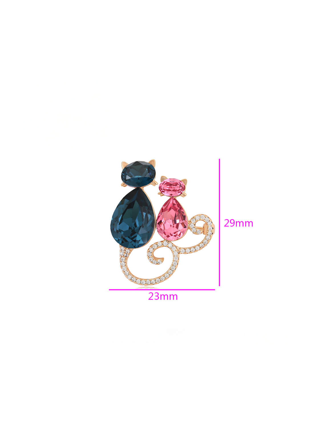 Γυναικεία καρφίτσα με δίδυμες γάτες και κρύσταλλα σε ροζ και μπλε χρώμα