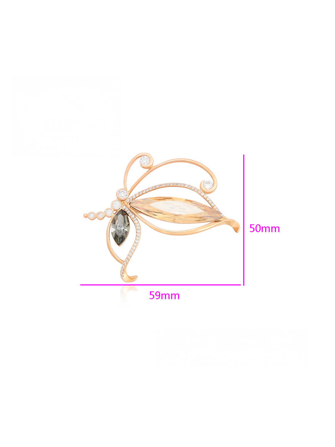 Γυναικεία καρφίτσα σε σχήμα φύλλου με σαμπανιζέ και διαφανείς κρυστάλλους