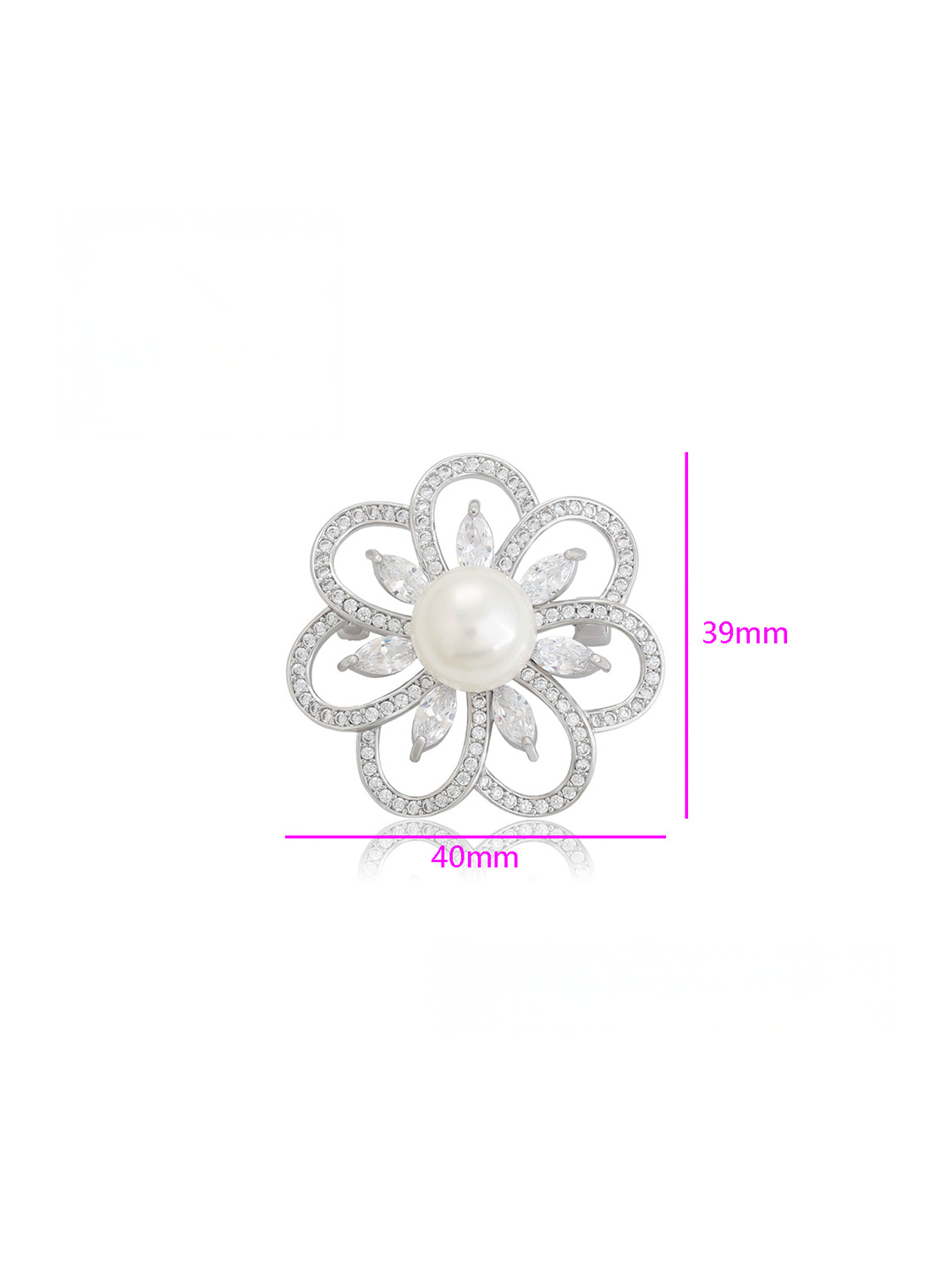 Γυναικεία Καρφίτσα Λουλούδι με Πέρλα & Ζιργκόν με Επικάλυψη Πλατίνας