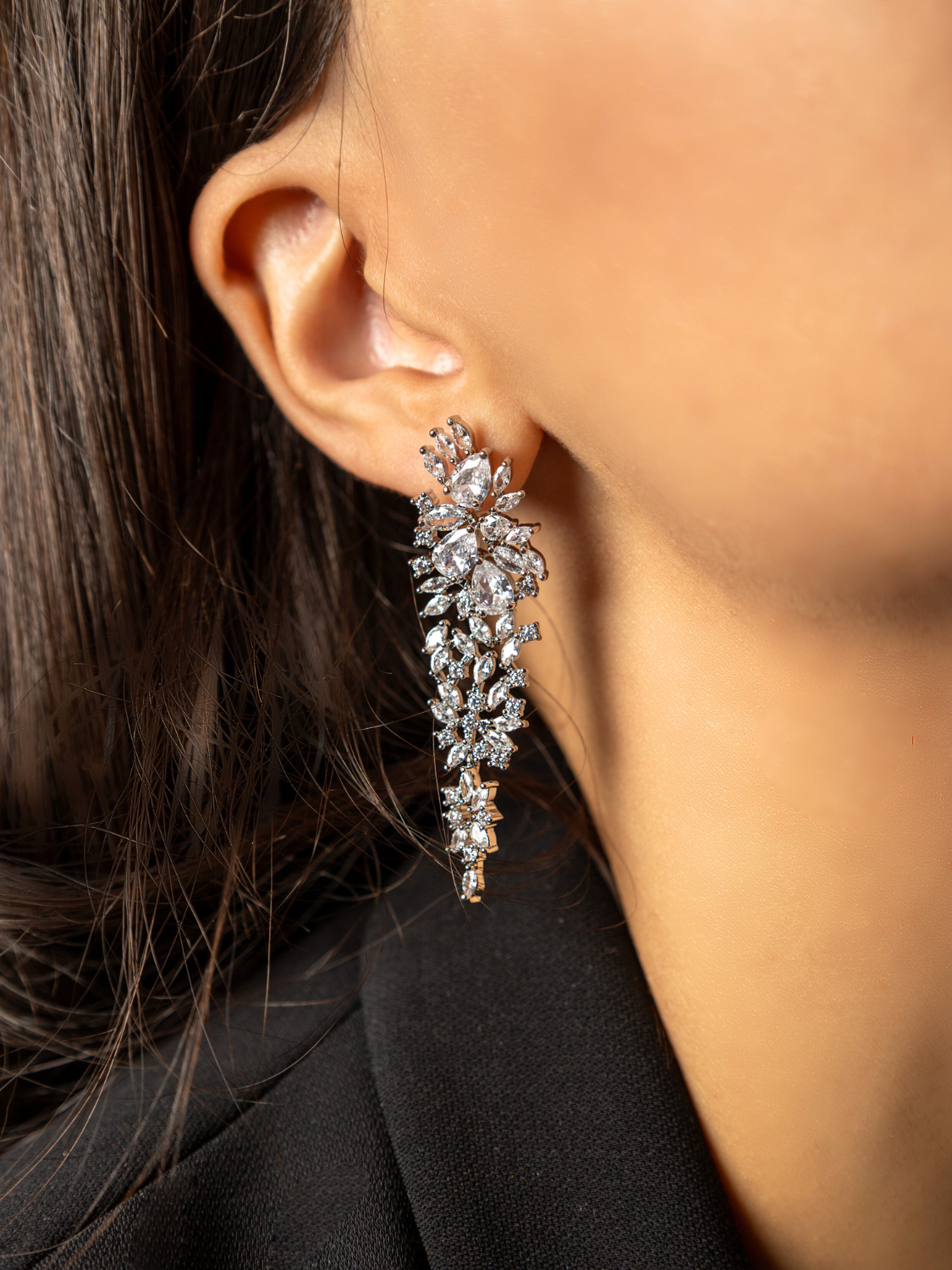 'Crystal Cascade Earrings', το απόλυτο έργο τέχνης. . Με λαμπερές ζιργκόν πέτρες που αποτυπώνουν την ακρίβεια και τη λεπτομέρεια ενός παγωμένου καταρράκτη, αυτά τα σκουλαρίκια προσφέρουν μια θεαματική έκρηξη λάμψης. Το πολύπλοκο σχέδιο τους, που ενσωματώνει διαφορετικές κοπές και μεγέθη, δημιουργεί μια εκθαμβωτική διάταξη, ενώ το μακρύ τους μήκος δίνει μια αίσθηση πολυτέλειας. Τα 'Crystal Cascade Earrings' είναι το ιδανικό κόσμημα για ξεχωριστές βραδιές και λαμπερές εκδηλώσεις, προορίζονται να κλέψουν την παράσταση.