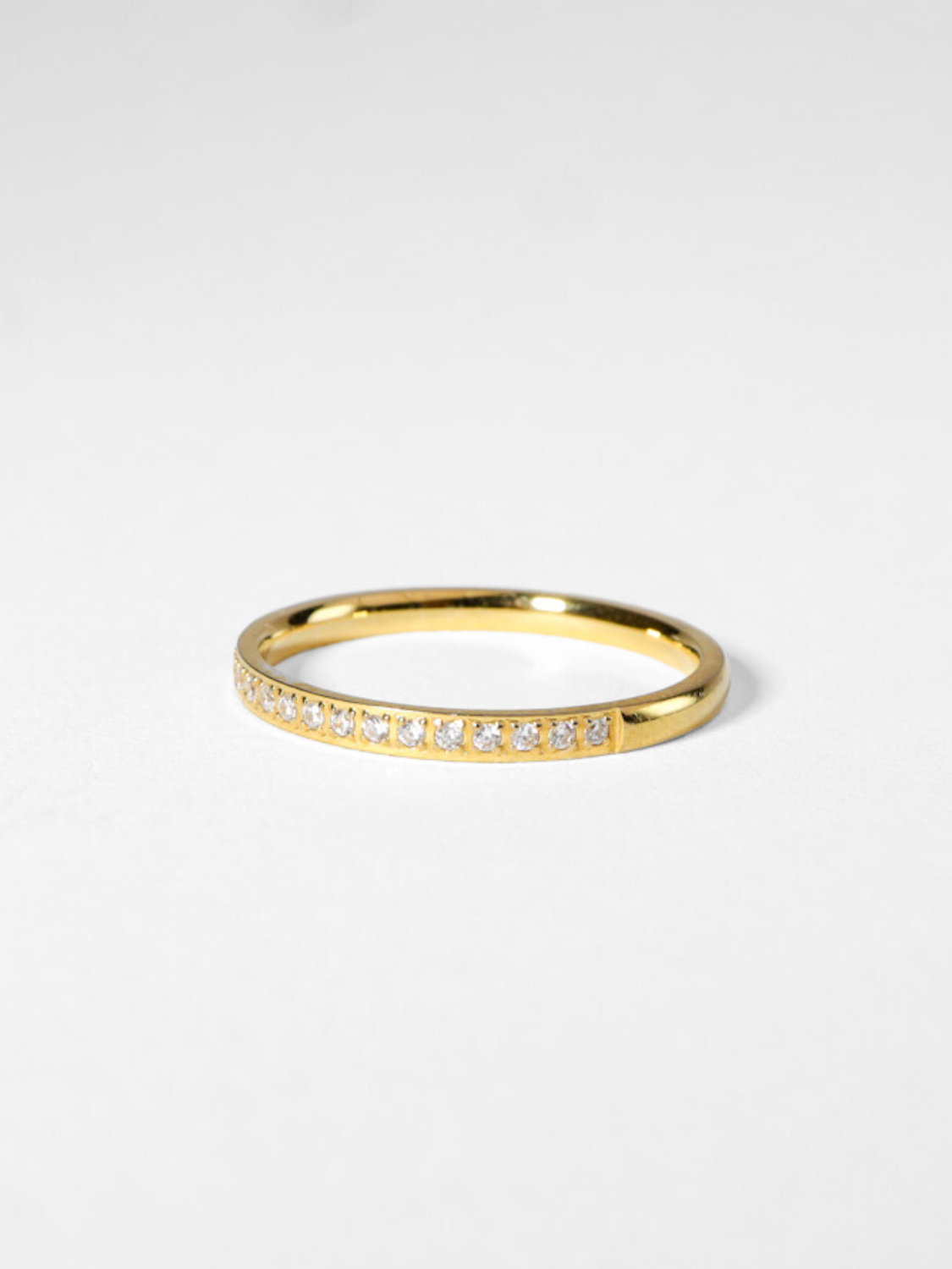Αποτυπώστε τη λάμψη των ηλιαχτίδων στο χρυσό χρώμα του δαχτυλιδιού "Golden Dewdrop Ring". Με λεπτό και απλό σχεδιασμό, αυτό το δαχτυλίδι φέρει μικρές πέτρες που θυμίζουν σταγόνες δροσιάς. Είναι ιδανικό για να συνδυαστεί με άλλα δαχτυλίδια για ένα πιο δημιουργικό και προσωπικό look ή να φορεθεί μόνο για διακριτική κομψότητα.