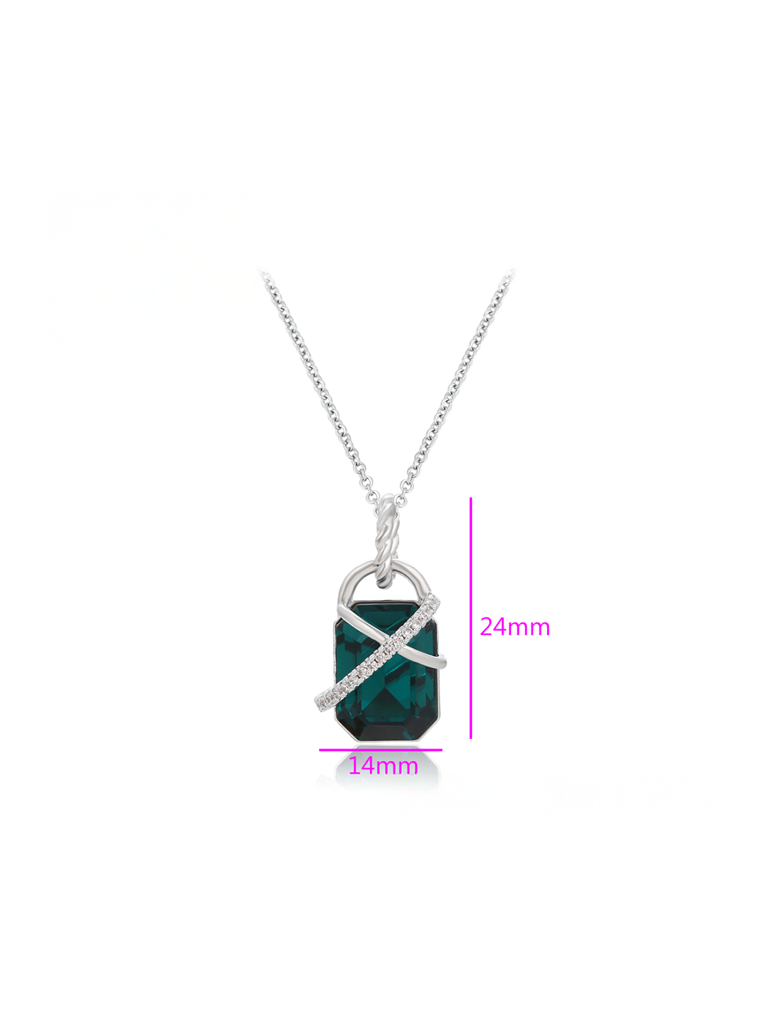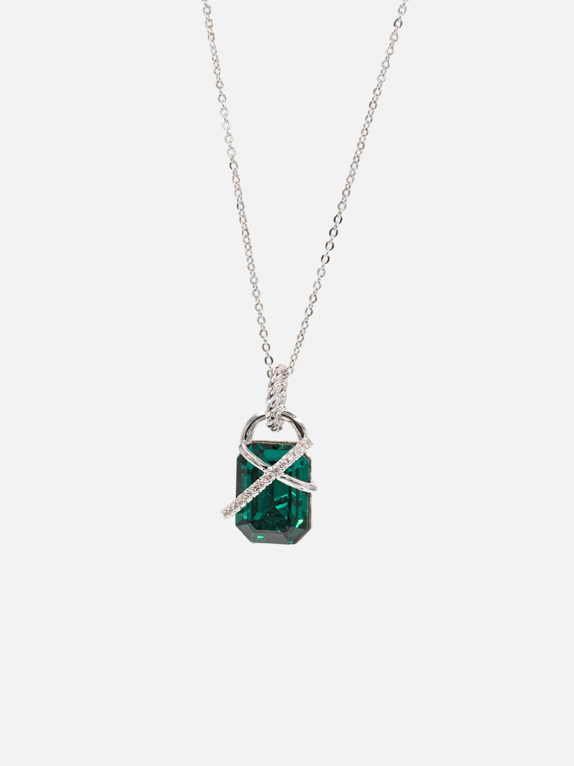 Γυναικείο Κολιέ Επιπλατινωμένο με Πράσινο Κρύσταλλο & Ζιργκόν