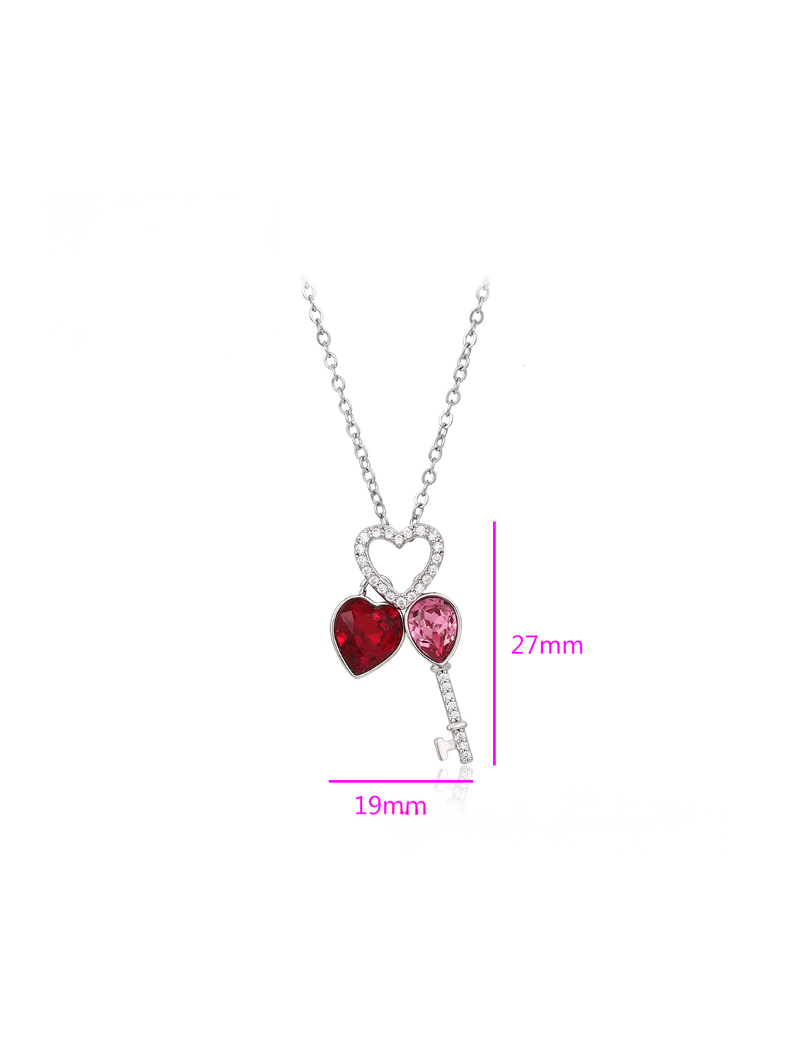 Γυναικείο Κολιέ Κλειδί με Καρδιά Επιπλατινωμένο & Κόκκινο - Ροζ Κρύσταλλα