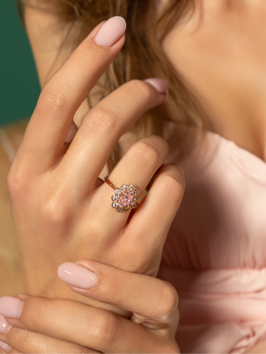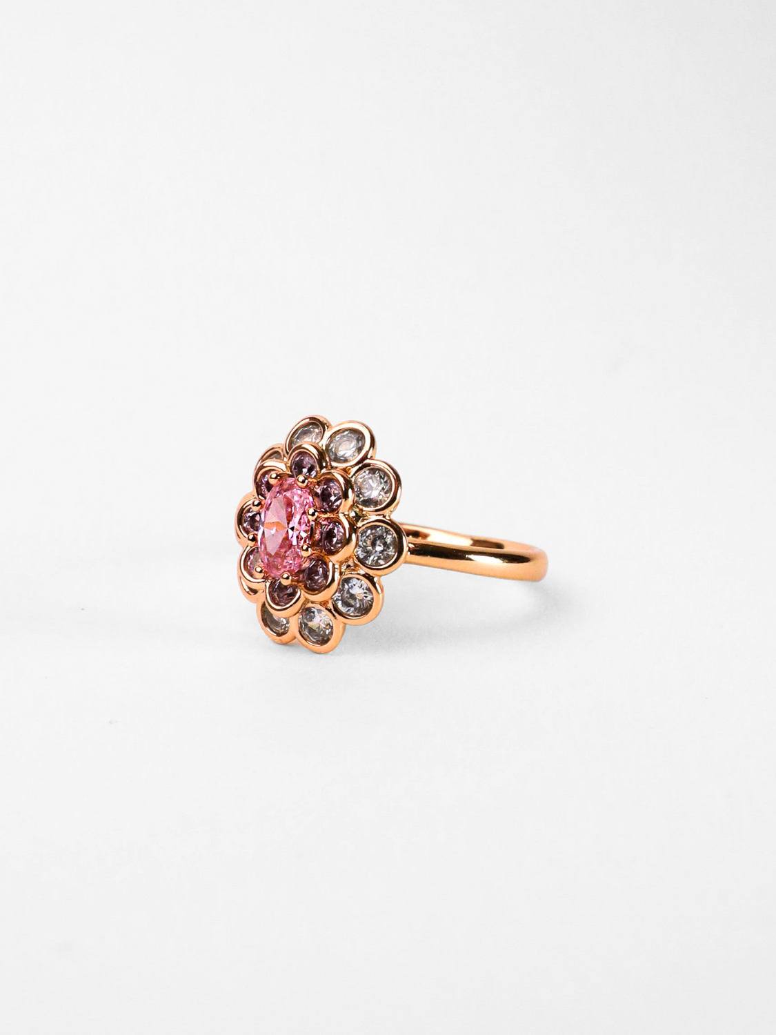 To δαχτυλίδι "Pink Daisy" είναι ένας ύμνος στην αιθέρια ομορφιά της φύσης. Σχεδιασμένο με έναν λίθο σε απαλό ροζ χρώμα, θυμίζει μια ανθισμένη μαργαρίτα που αγκαλιάζει την άνοιξη. Είτε το φορέστε ως διακριτικό σημείο λάμψης σε καθημερινές εμφανίσεις είτε ως την τελική πινελιά σε μια βραδινή εμφάνιση, αυτό το δαχτυλίδι αναδεικνύει κάθε στυλ με την άψογη αρμονία του.