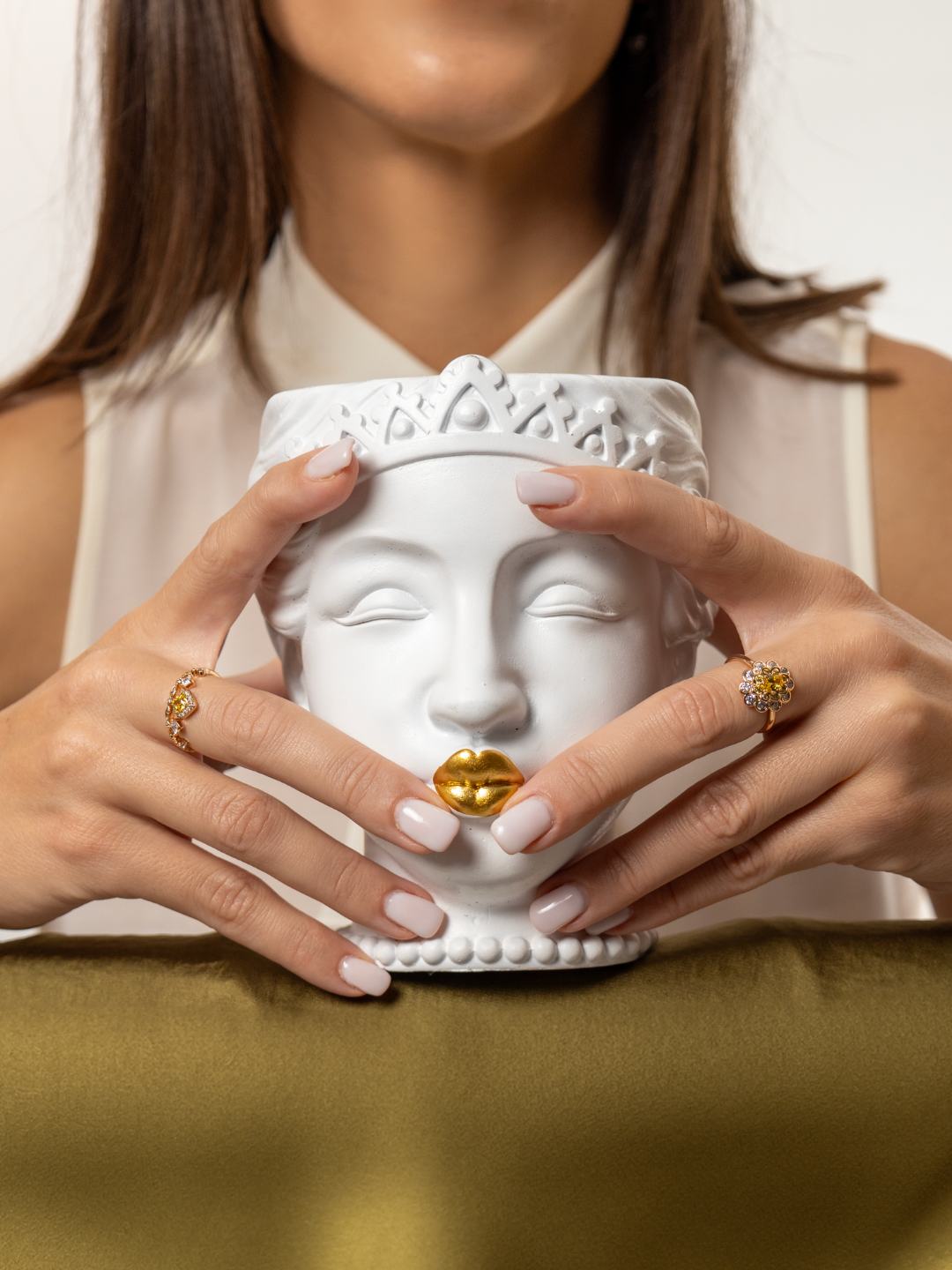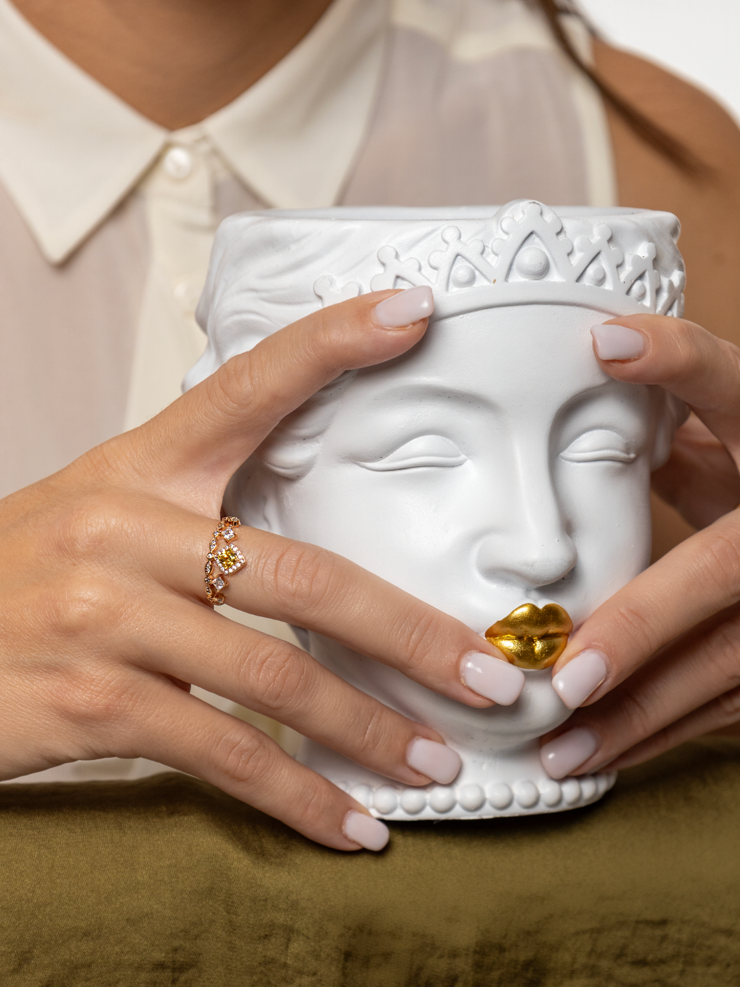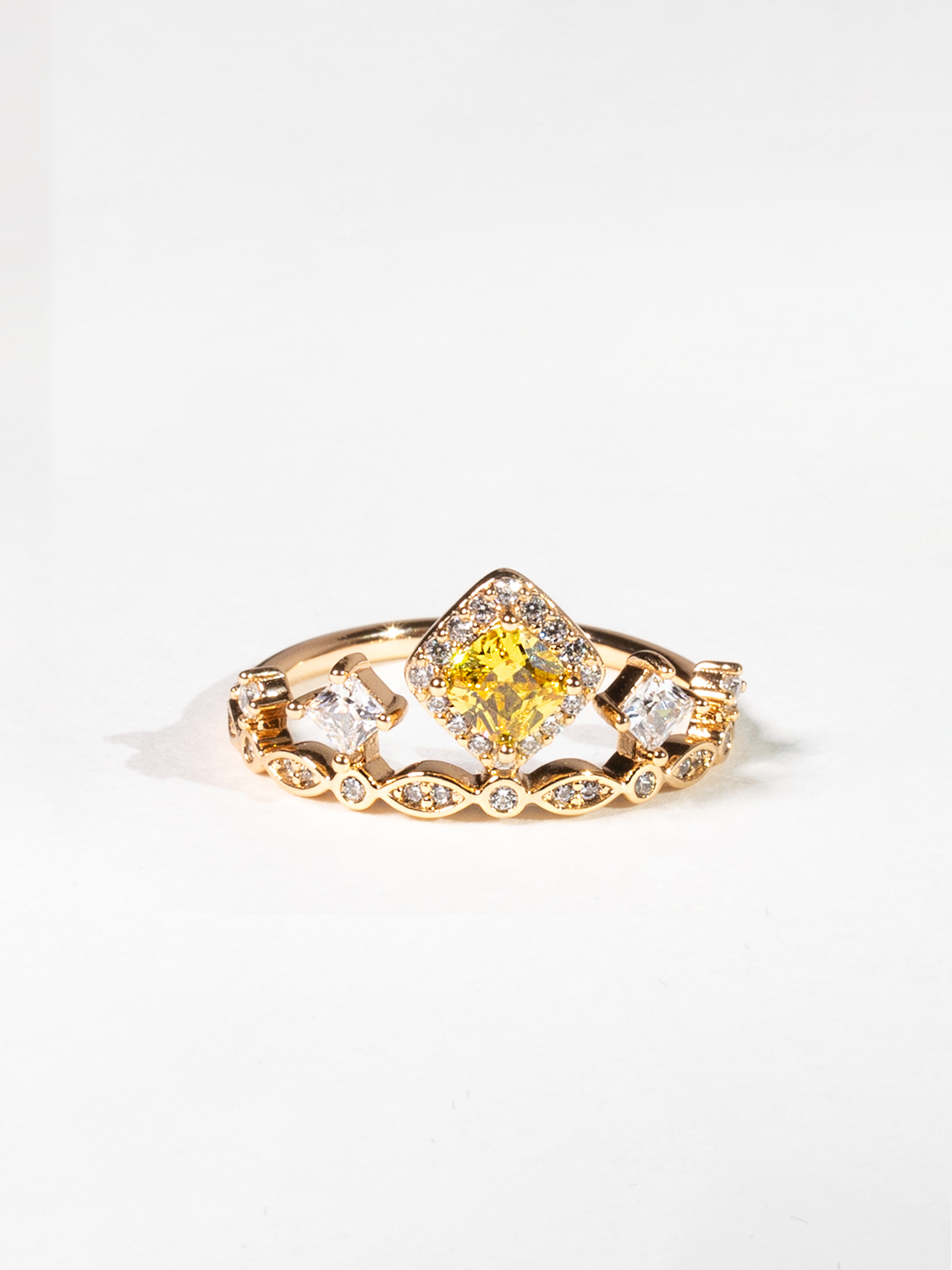 Το δαχτυλίδι 'Sunbeam Majesty' αποτυπώνει τη λάμψη και την ομορφιά του ηλιακού φωτός. Το εκλεκτό κίτρινο πετράδι στο κέντρο αντιπροσωπεύει τη θερμότητα και την ενέργεια του, ενώ διακριτικά πετρέλαια το περιβάλλουν προσθέτουν μια αίσθηση που αισθάνεται τα πολυτελούς λάμψης. Το χρυσό μέταλλο που συνθέτει τη βάση του δαχτυλιδιού συμπληρώνει τέλεια την ζεστασιά του κεντρικού λιθού, ενώ το μοναδικό σχέδιο του αναδεικνύει την πρωτοποριακή αισθητική και την τέχνη του σχεδιασμού.