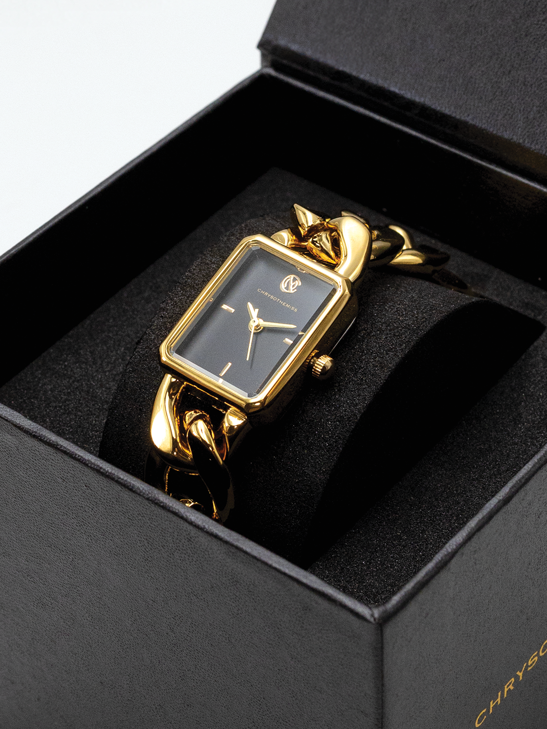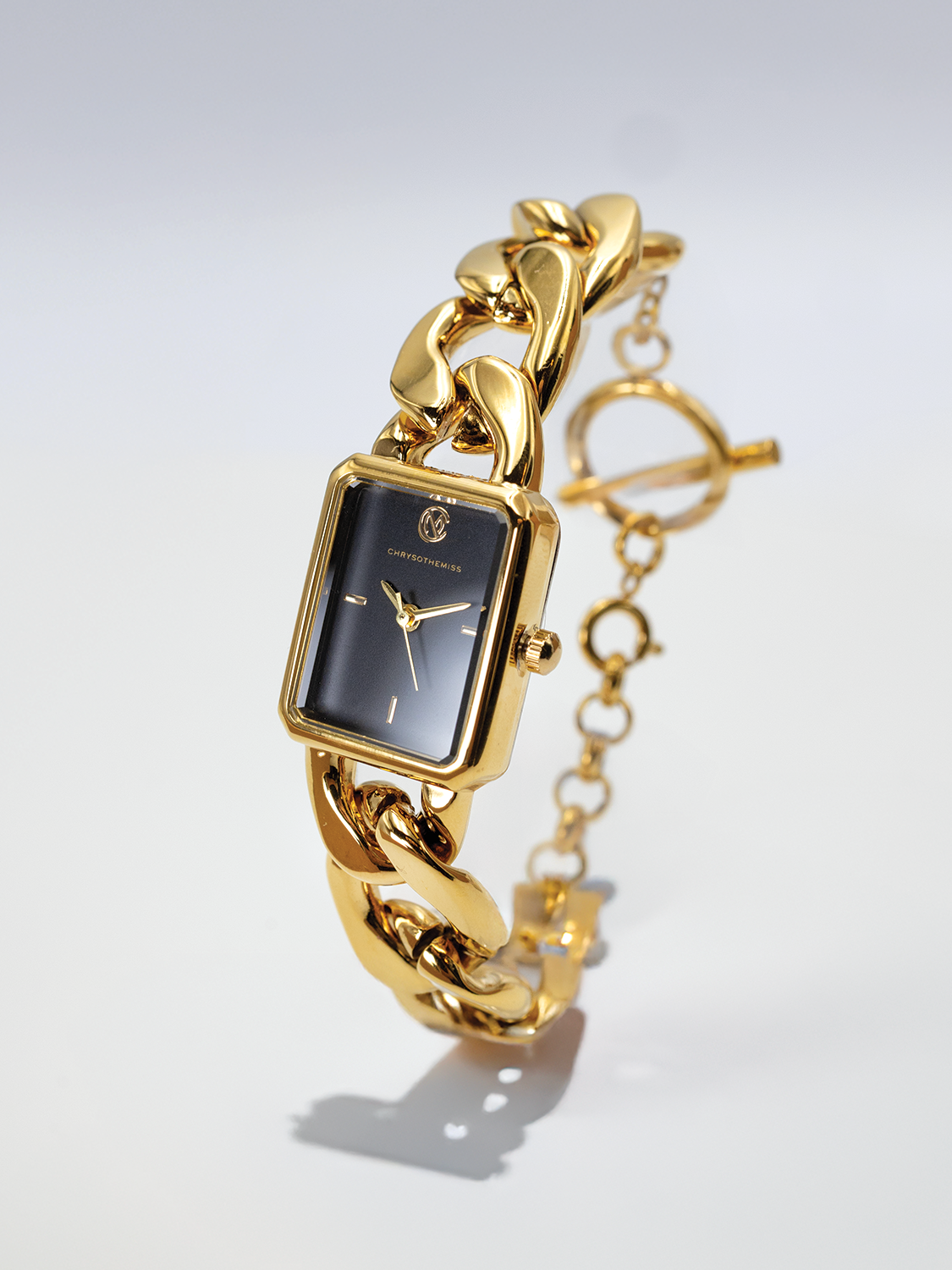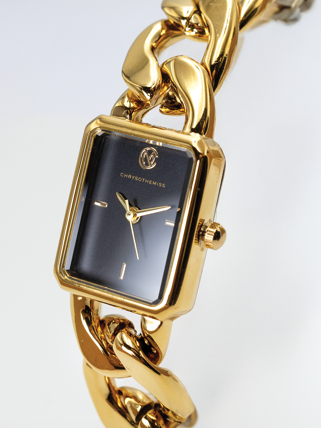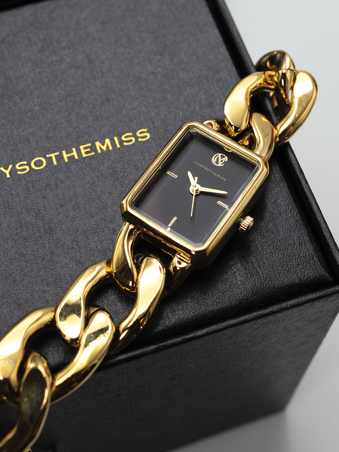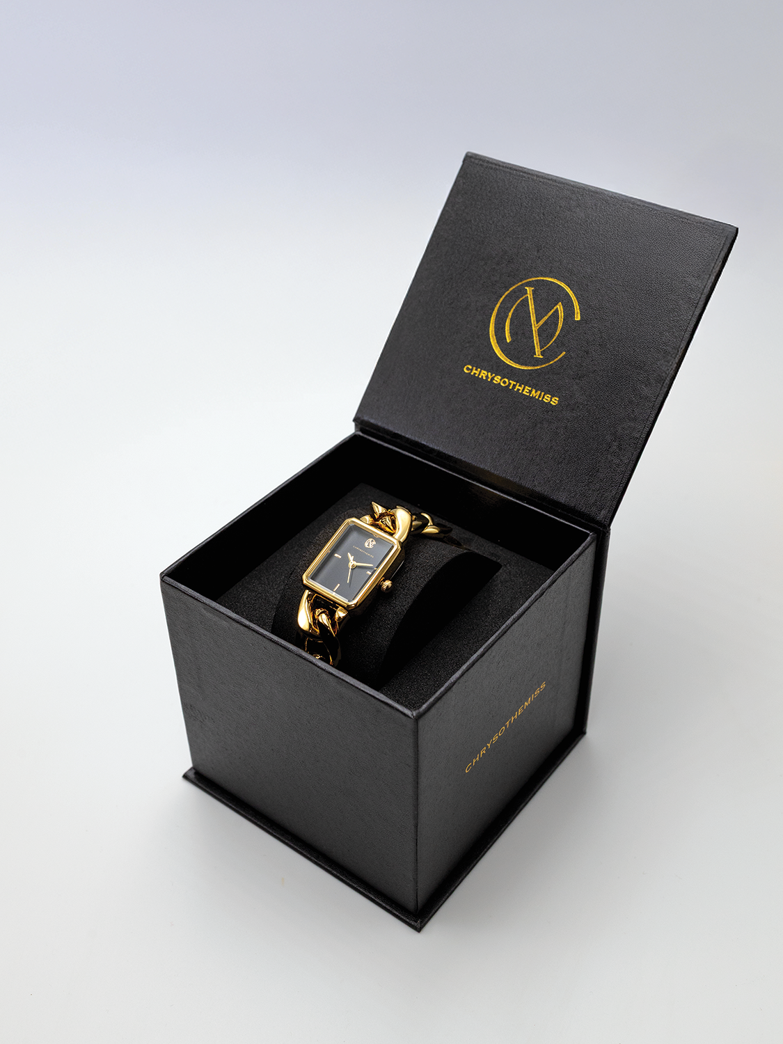 Γυναικείο Ρολόι Χειρός σε Χρυσό Χρώμα με Vintage Αλυσίδα και Μαύρο Καντράν