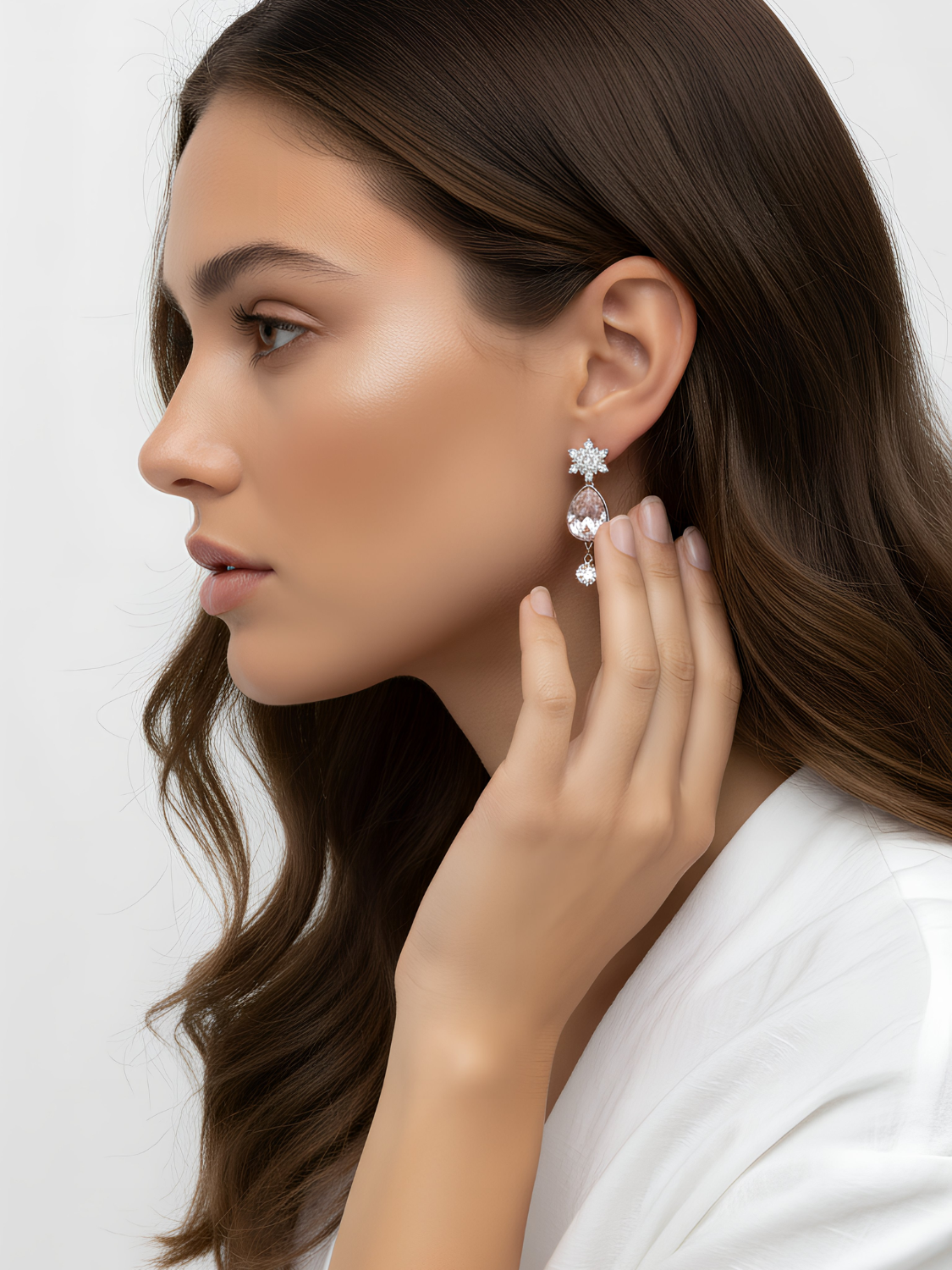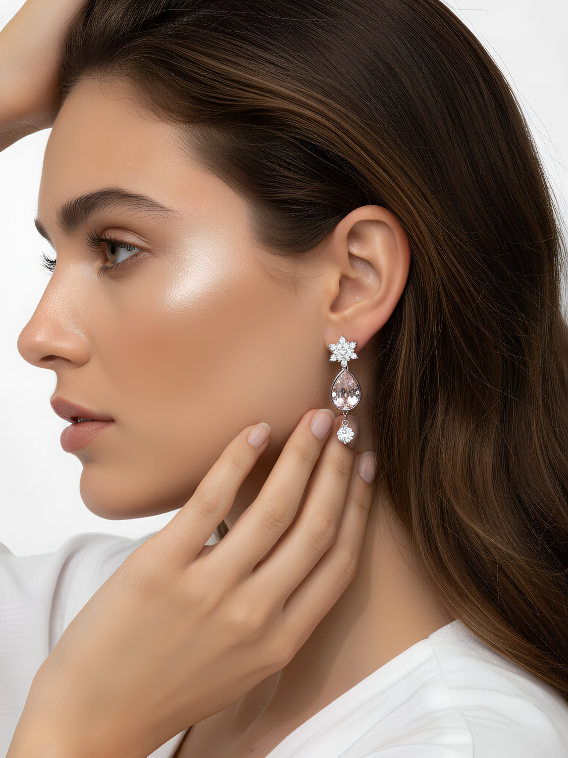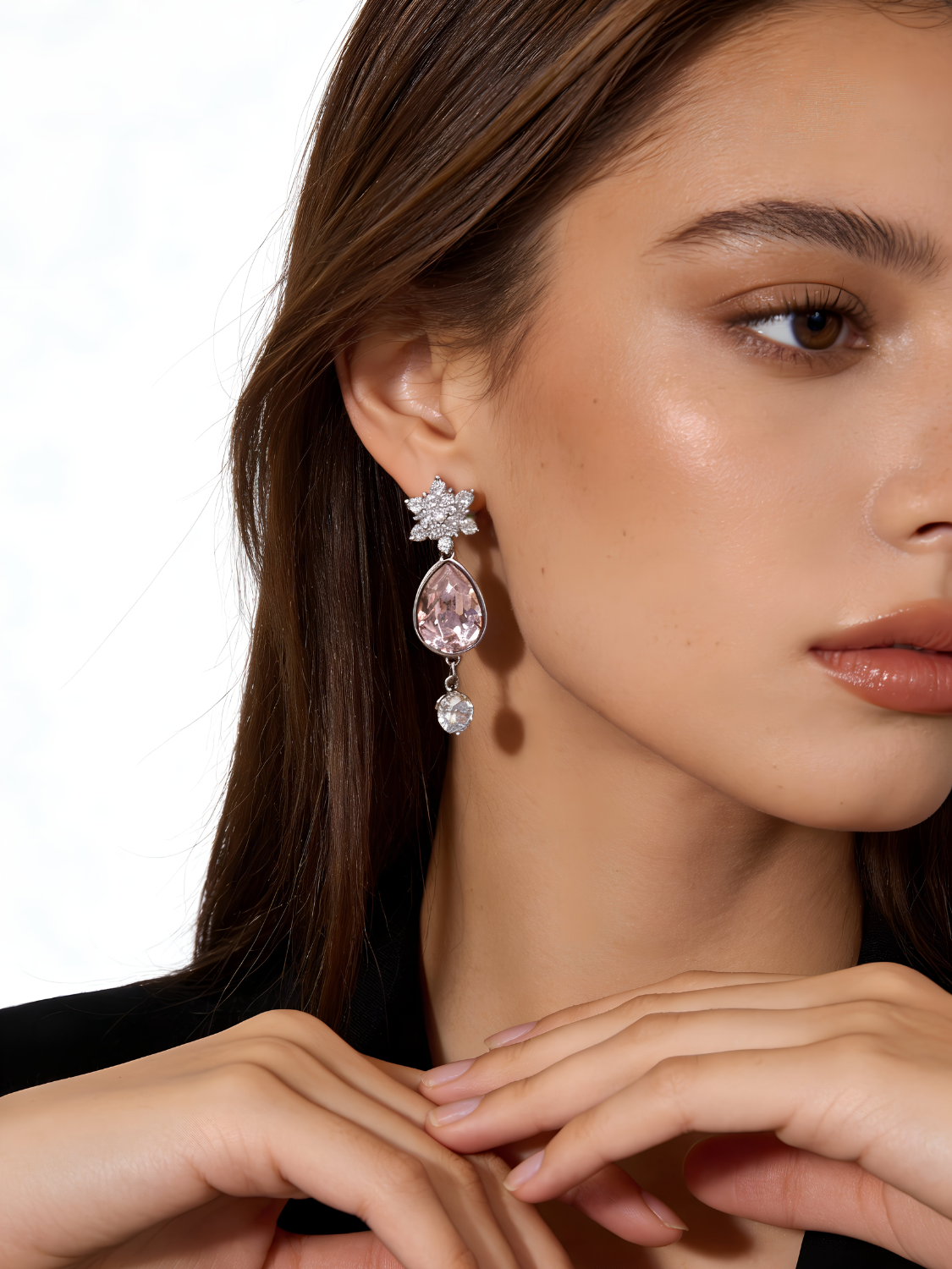 Women's Modern Earrings with Pink Crystal in Teardrop Shape