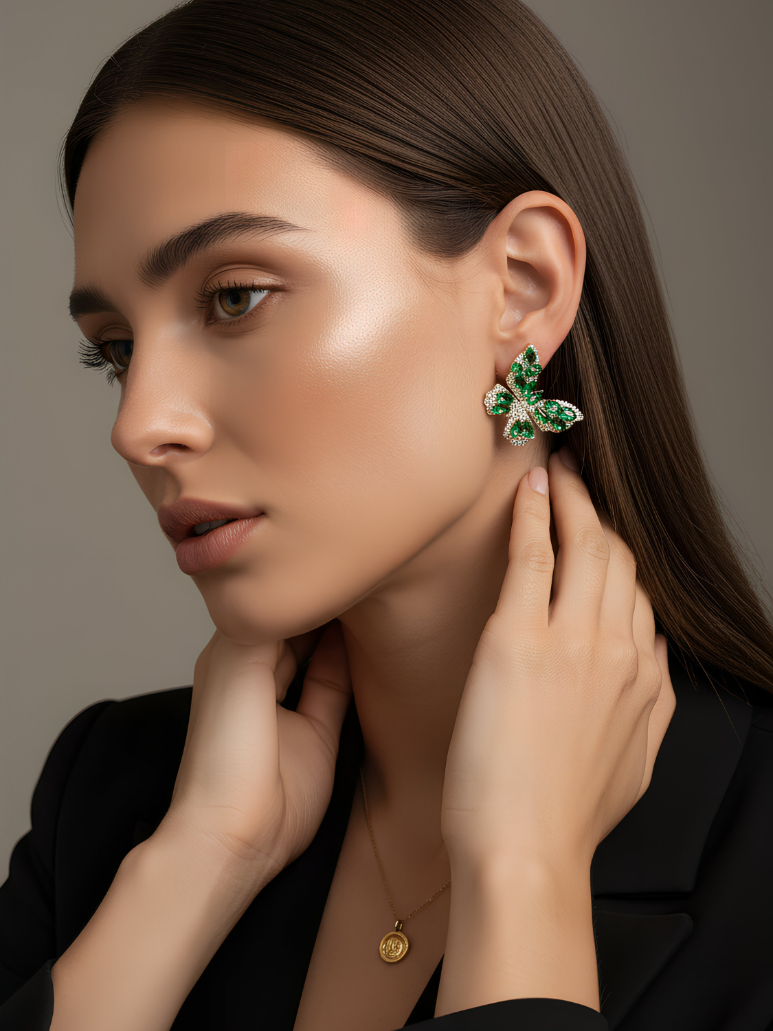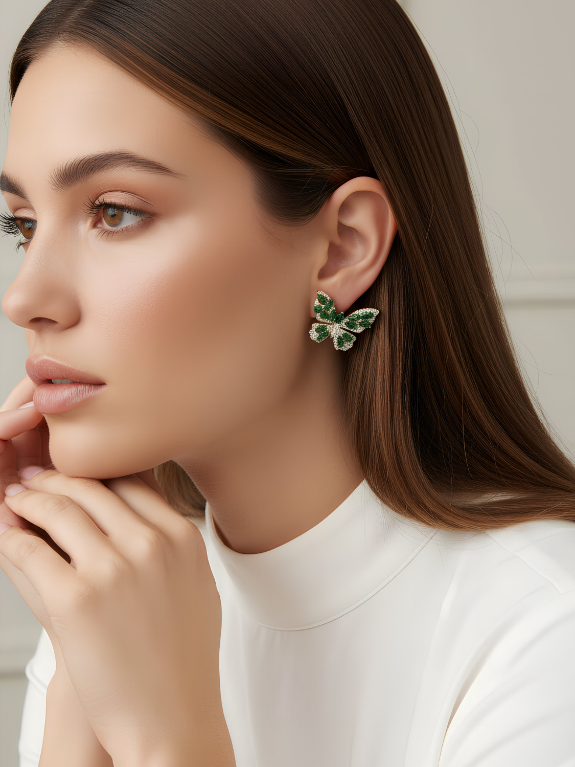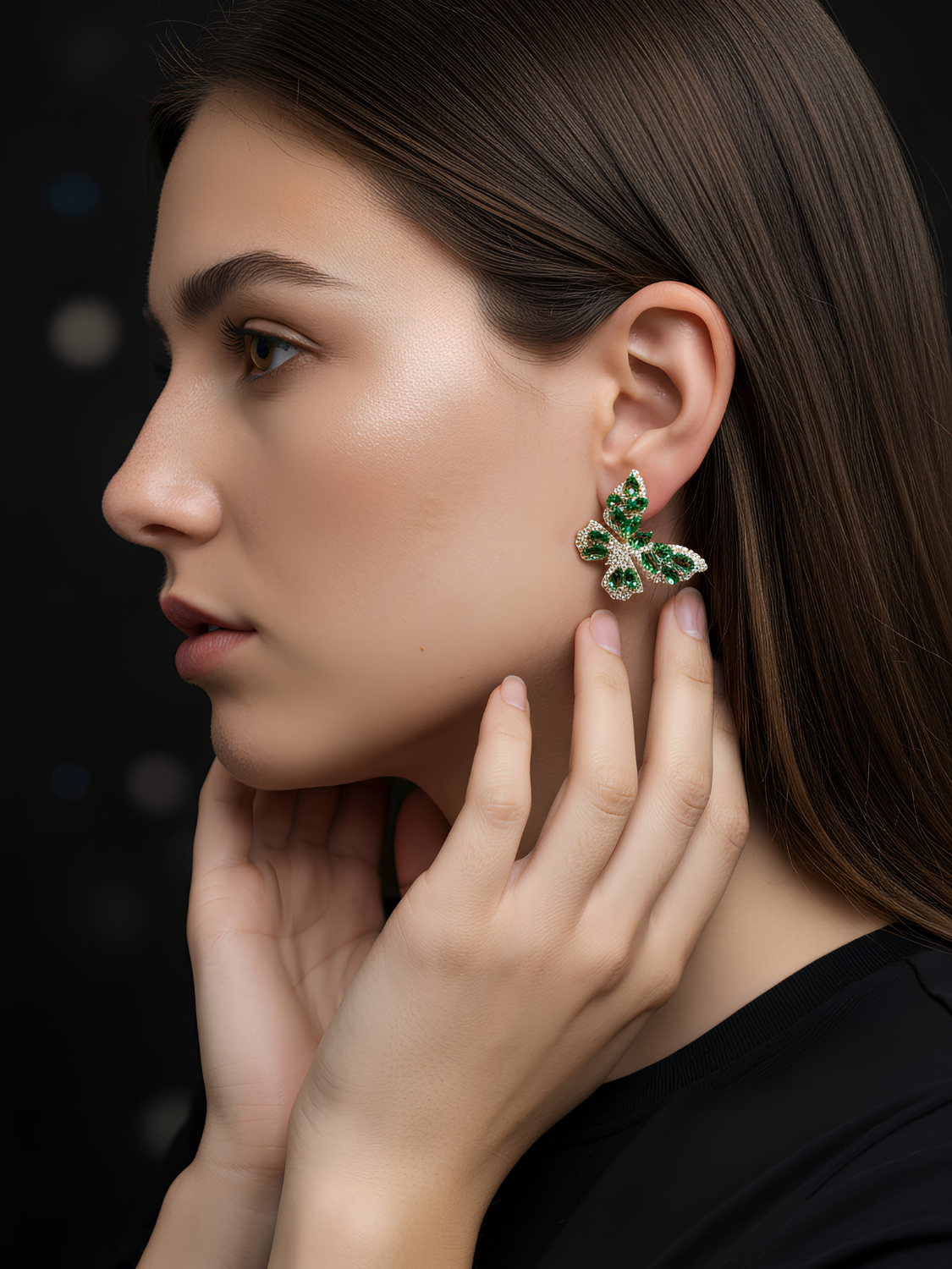 Τα σκουλαρίκια Forest Butterfly είναι ένα εντυπωσιακό ζευγάρι σκουλαρίκια που αποτυπώνουν την ομορφιά και τη χάρη της φύσης. Διακοσμημένα με πράσινους κρυστάλλους σε σχήμα πεταλούδας και λεπτομέρειες με λευκά ζιργκόν, προσφέρουν λάμψη και κομψότητα σε κάθε εμφάνιση. Ιδανικά για γυναίκες που αγαπούν τα φυσικά μοτίβα και τις ιδιαίτερες λεπτομέρειες.