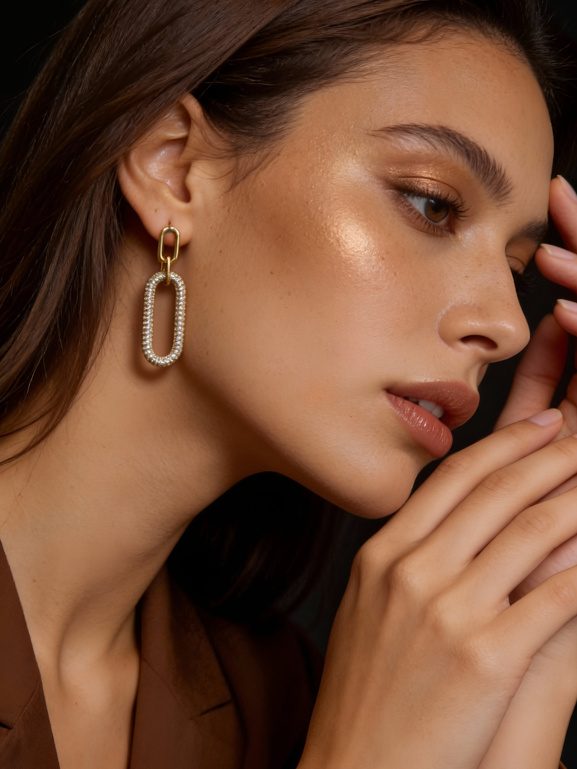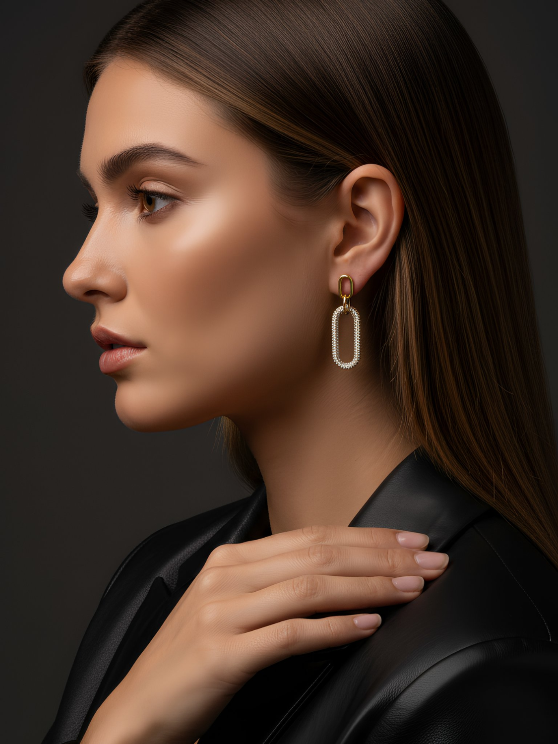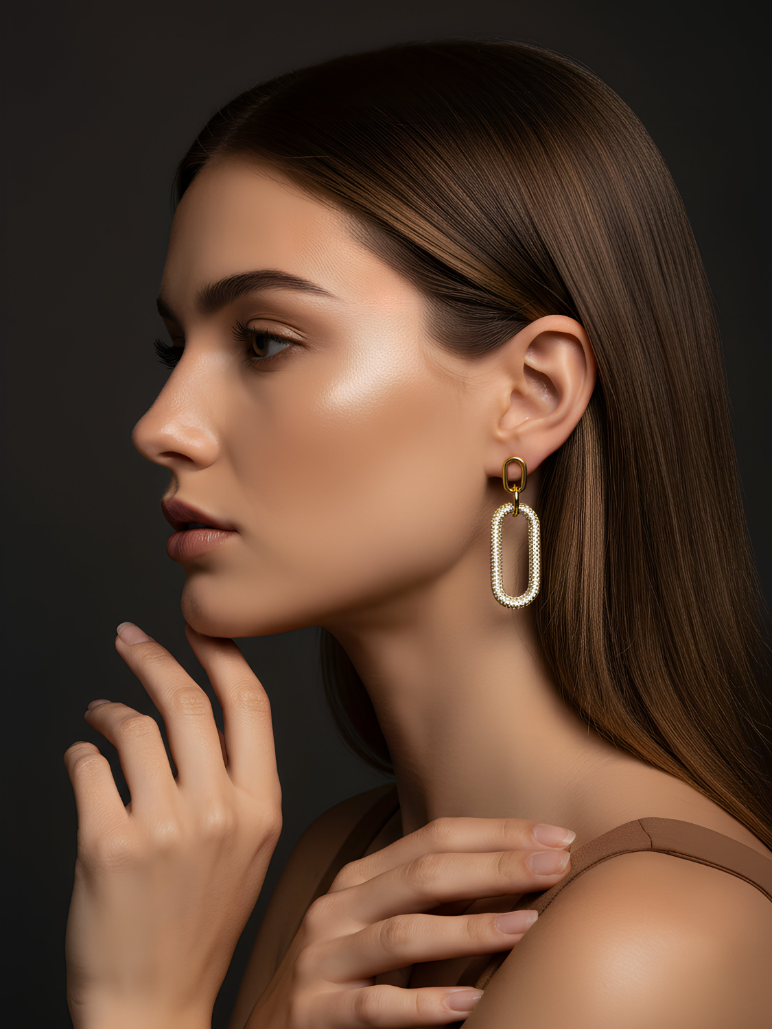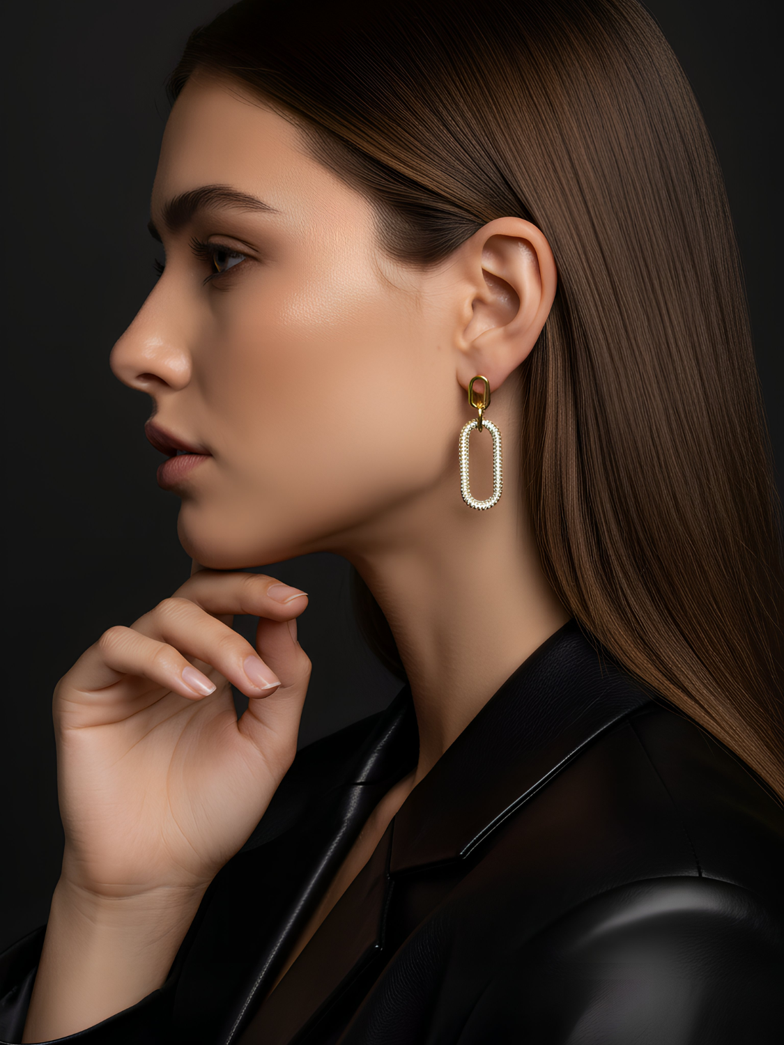 Τα Σκουλαρίκια Oval Link είναι ο ιδανικός συνδυασμός κομψότητας και μοντέρνου σχεδιασμού. Κατασκευασμένα από οικολογικό χαλκό με επίστρωση 14Κ χρυσού, αυτά τα σκουλαρίκια αποπνέουν πολυτέλεια και διαχρονικότητα. Ο ιδιαίτερος σχεδιασμός τους με το οβάλ σχήμα, πλαισιώνεται από λαμπερά συνθετικά ζιρκόν που προσδίδουν μία λαμπερή εμφάνιση σε κάθε σας εμφάνιση. Το ελαφρύ τους βάρος τα καθιστά ιδανικά για καθημερινή χρήση, ενώ η εκλεπτυσμένη αισθητική τους τα καθιστά κατάλληλα για ειδικές περιστάσεις.
