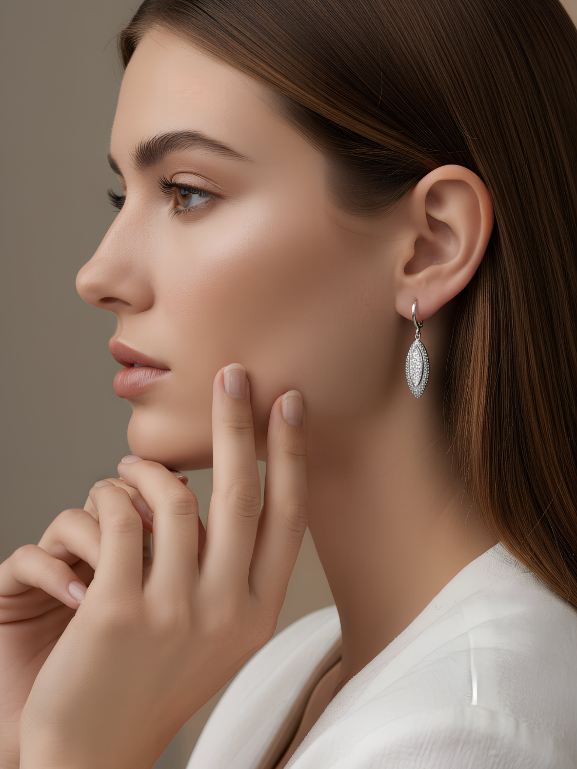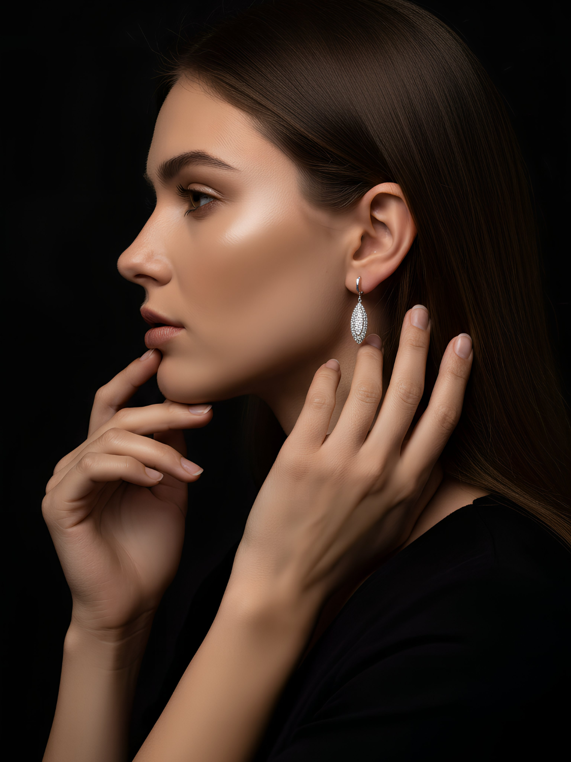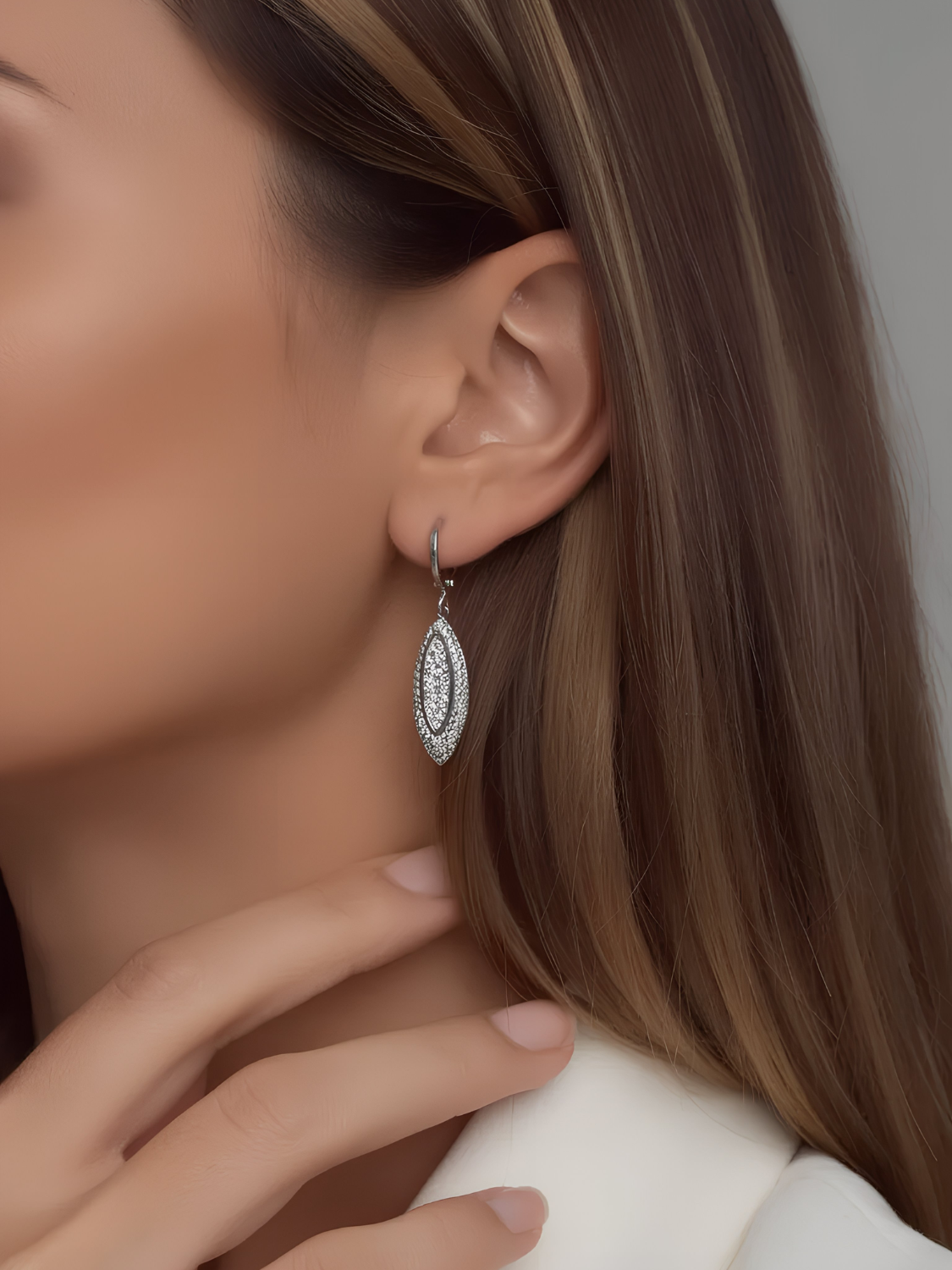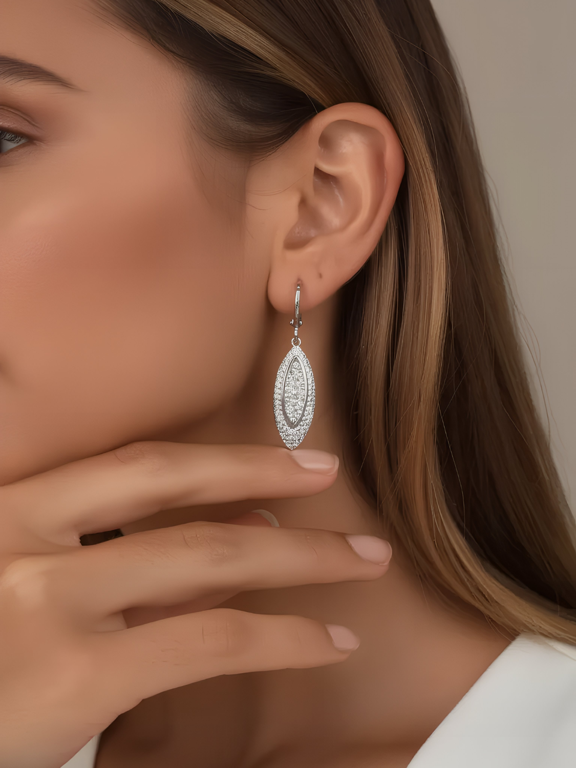 Women's Long Earrings with Rhinestone & White CZ Stones