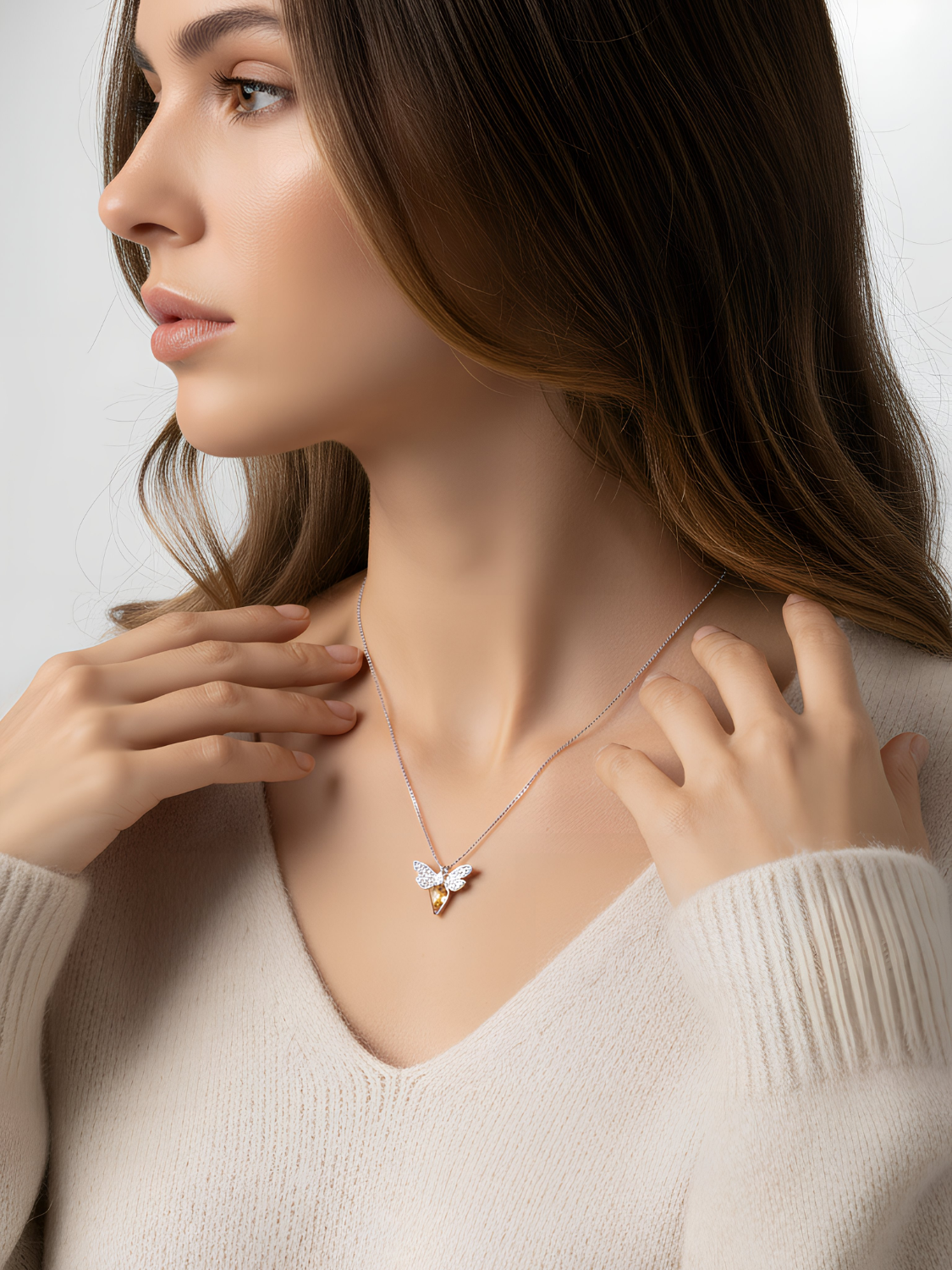 Women's Necklace with Champagne Crystal & Transparent Details