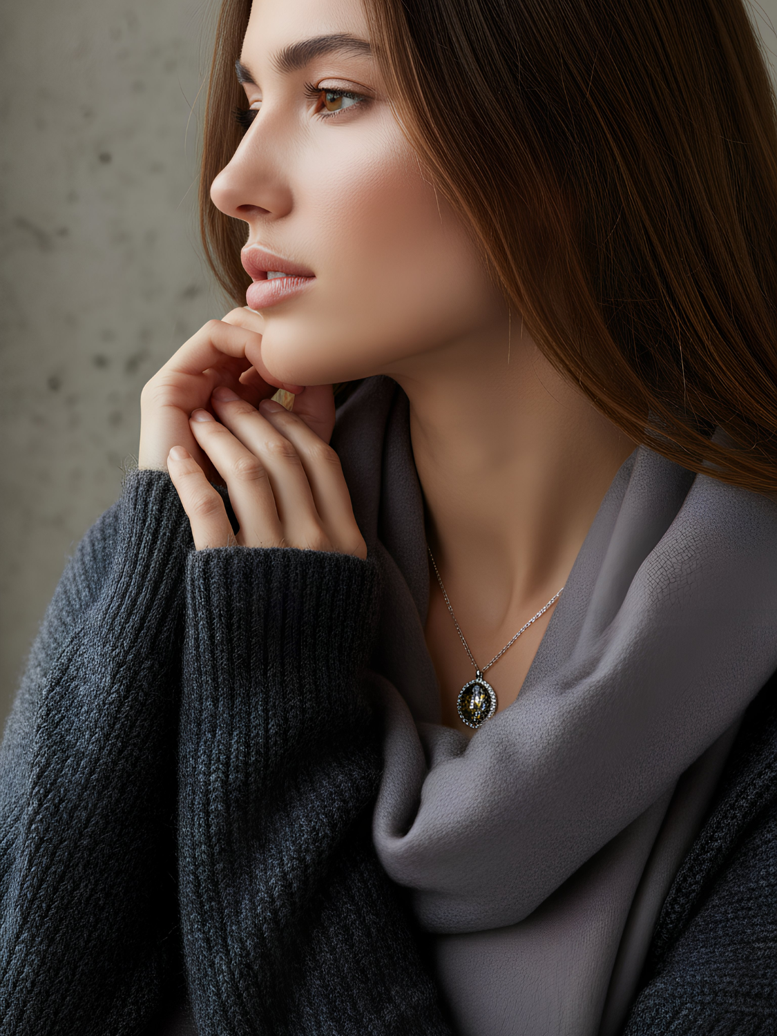 Women's Necklace with Grey Crystal & Stones in a Bright Design