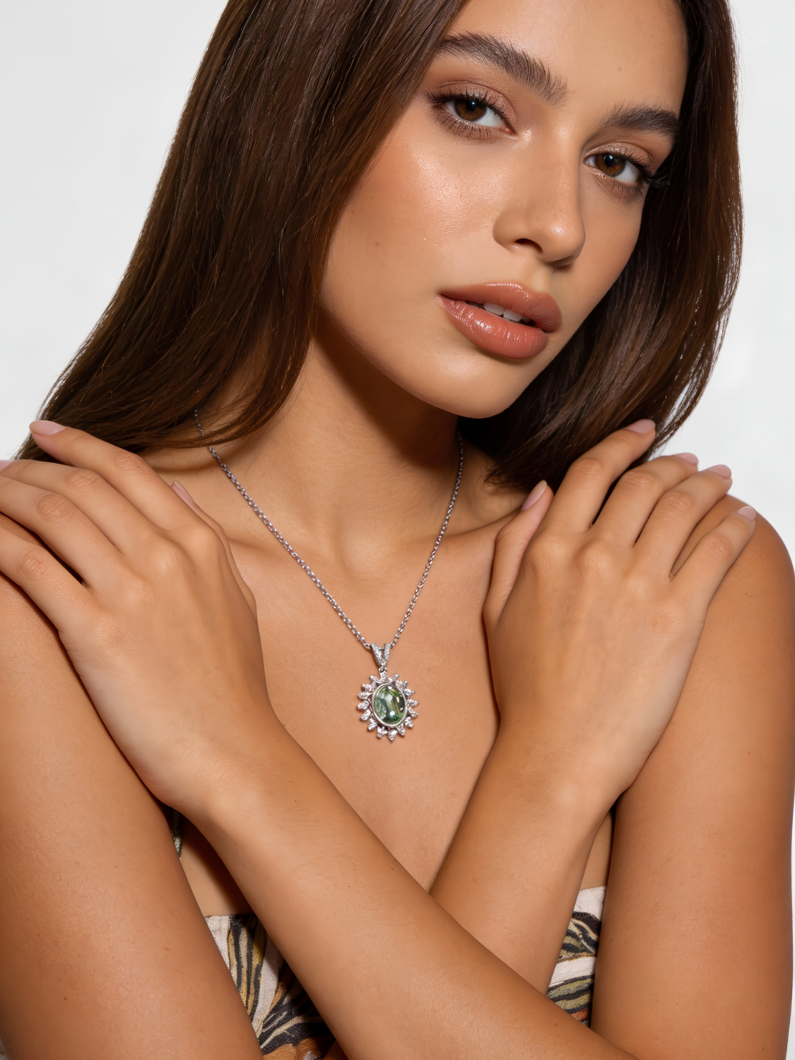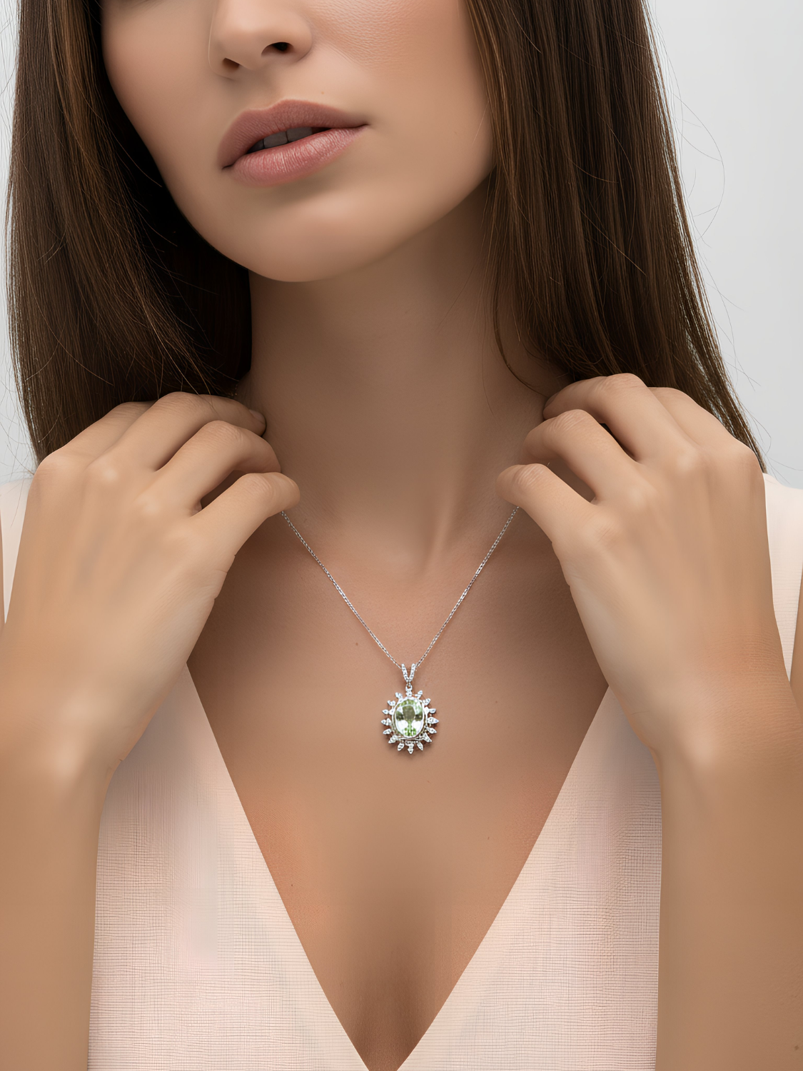 Women's Necklace Platinum Plated with Light Green & White Sparkles