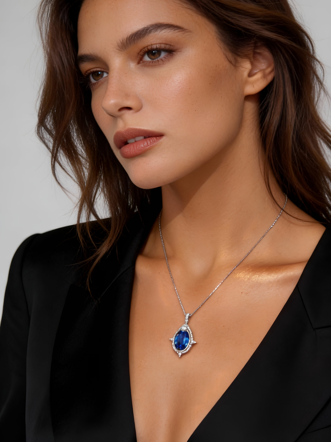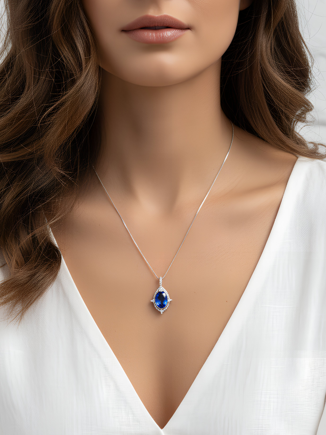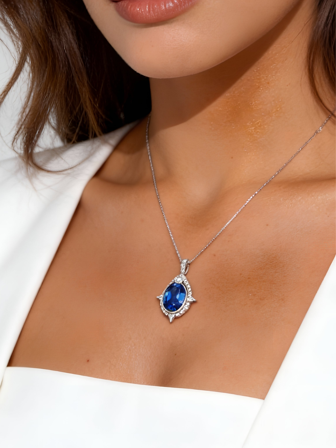 Women's Necklace Platinum Plated with Dark Blue Crystal