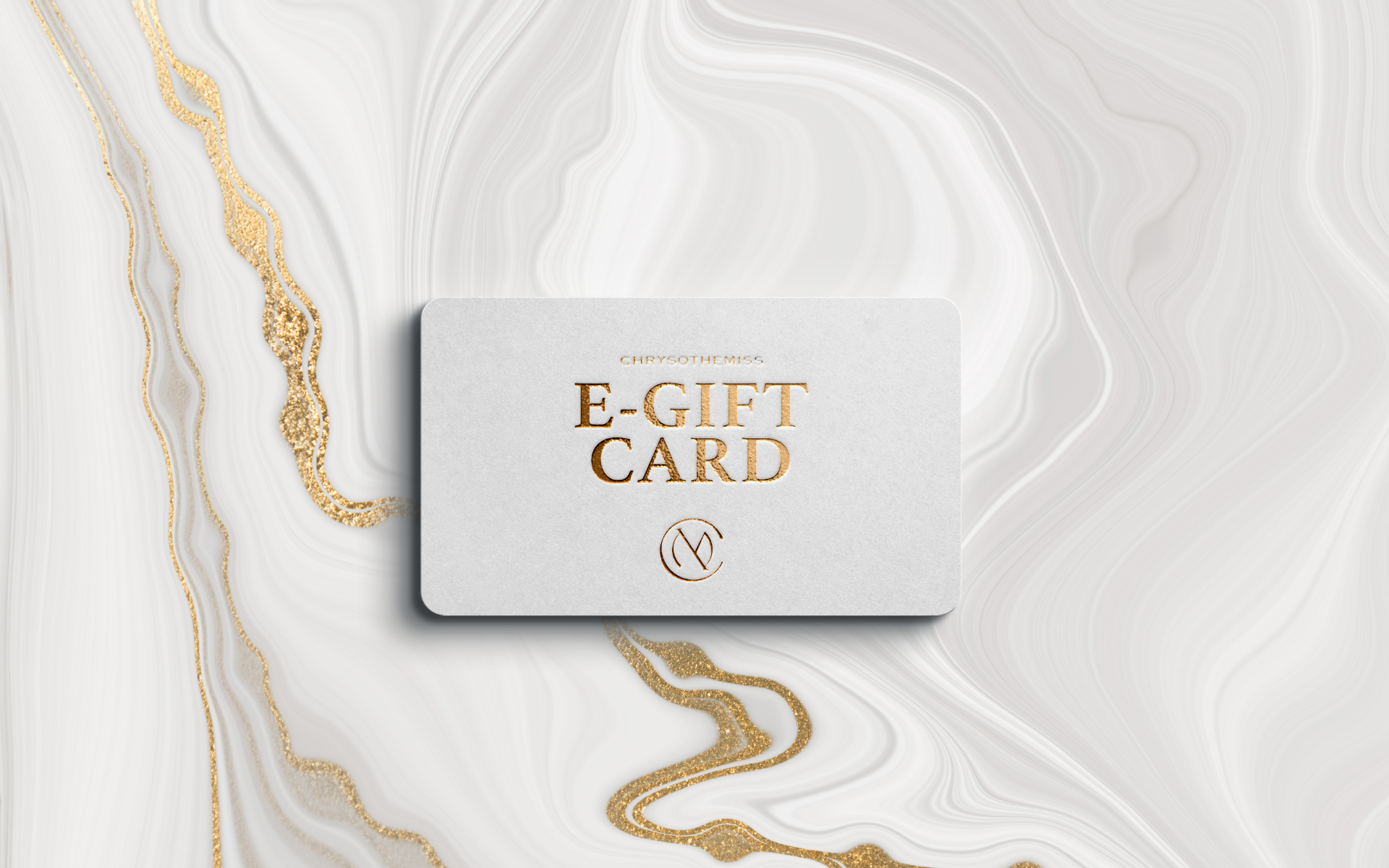 Διαθέσιμες σε διάφορες αξίες, οι Ηλεκτρονικές Κάρτες Δώρου Chrysothemiss Gift Card ισχύουν για 3 χρόνια.