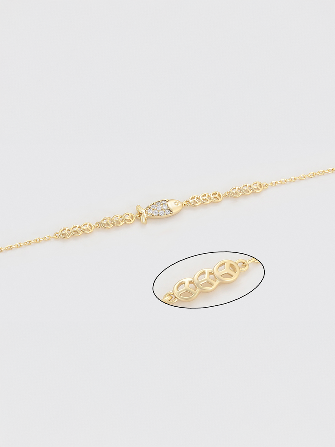 Το Tiny Fish είναι ένα κομψό και λεπτεπίλεπτο βραχιόλι με ένα διακριτικό ψαράκι στο κέντρο, διακοσμημένο με λαμπερά λευκά ζιρκόν. Η λεπτή του αλυσίδα με ιδιαίτερο μοτίβο σε κάθε πλευρά του ψαριού προσθέτει μία μοντέρνα νότα στο διαχρονικό χρυσό. Ιδανικό για layering με άλλα κοσμήματα ή για μία διακριτική πινελιά λάμψης στην καθημερινότητά σου. Ένα minimal κόσμημα που αποπνέει φρεσκάδα και στυλ, ιδανικό για όλες τις ώρες της ημέρας.