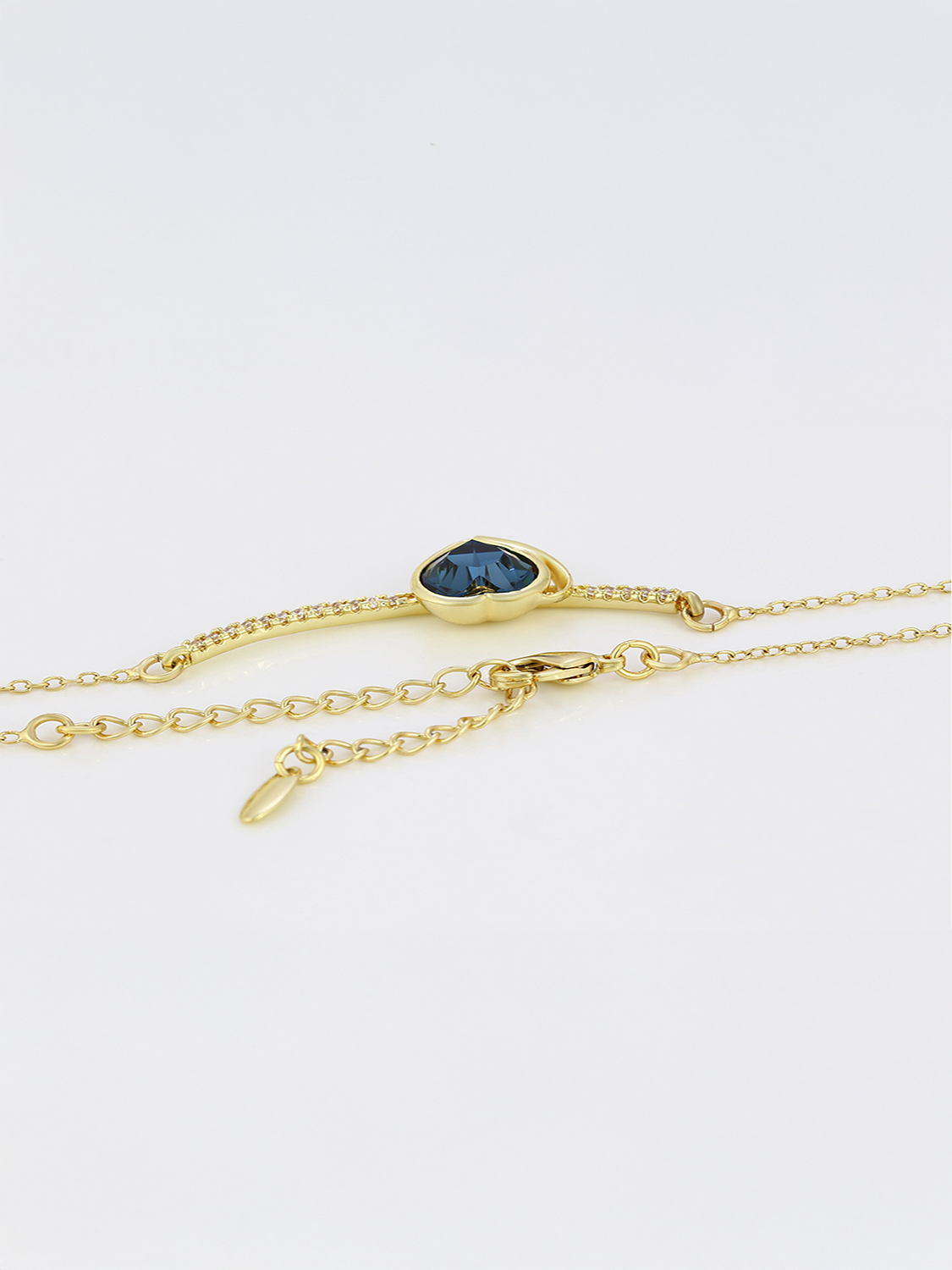 Το Midnight Heart είναι ένα ρομαντικό και εκλεπτυσμένο κολιέ που αιχμαλωτίζει την καρδιά με την πρώτη ματιά. Το εντυπωσιακό μπλε κρυστάλλινο σε σχήμα καρδιάς στοιχείο αγκαλιάζεται από λεπτή επίχρυση αλυσίδα και διακριτικά ζιρκόν κατά μήκος της καμπυλωτής βάσης, προσδίδοντας λάμψη και κομψότητα. Ιδανικό για ιδιαίτερες περιστάσεις, δώρα αγάπης ή για να προσθέσεις μία πολυτελή πινελιά σε κάθε εμφάνιση.