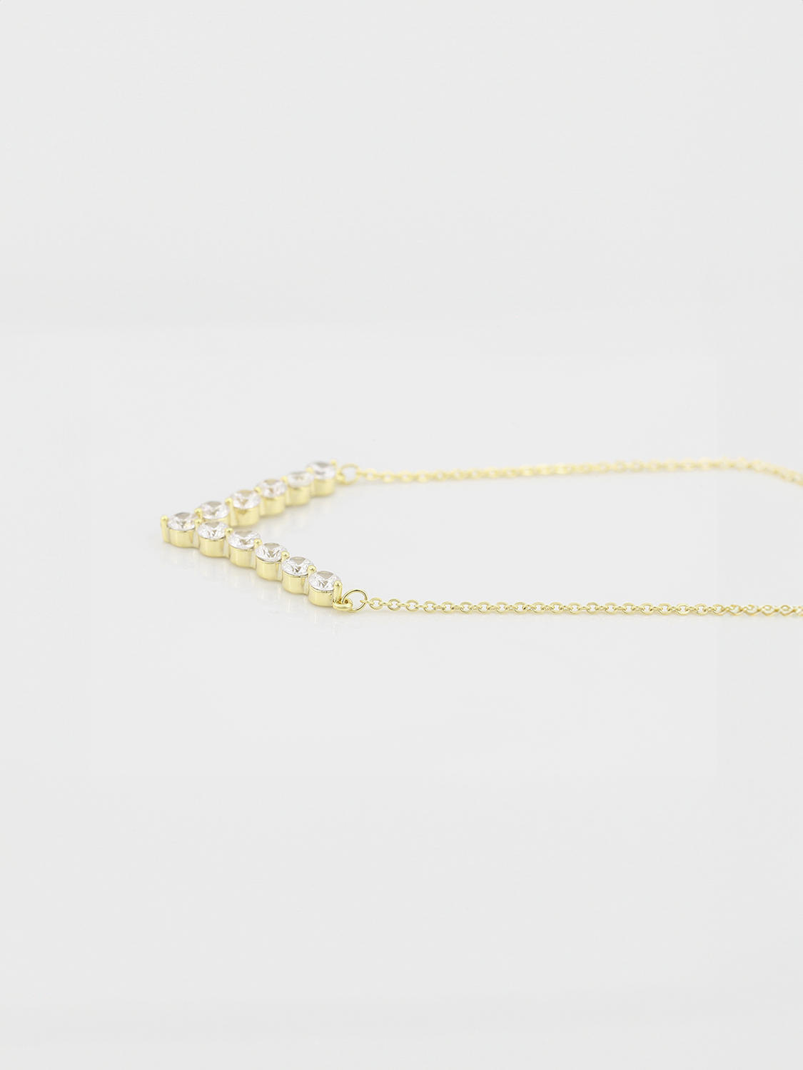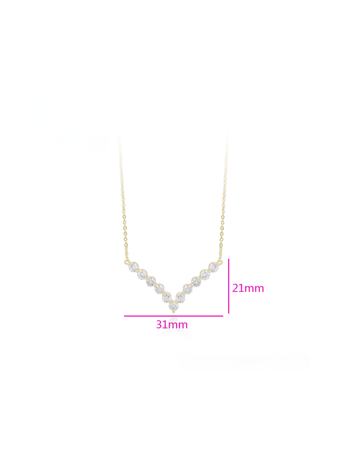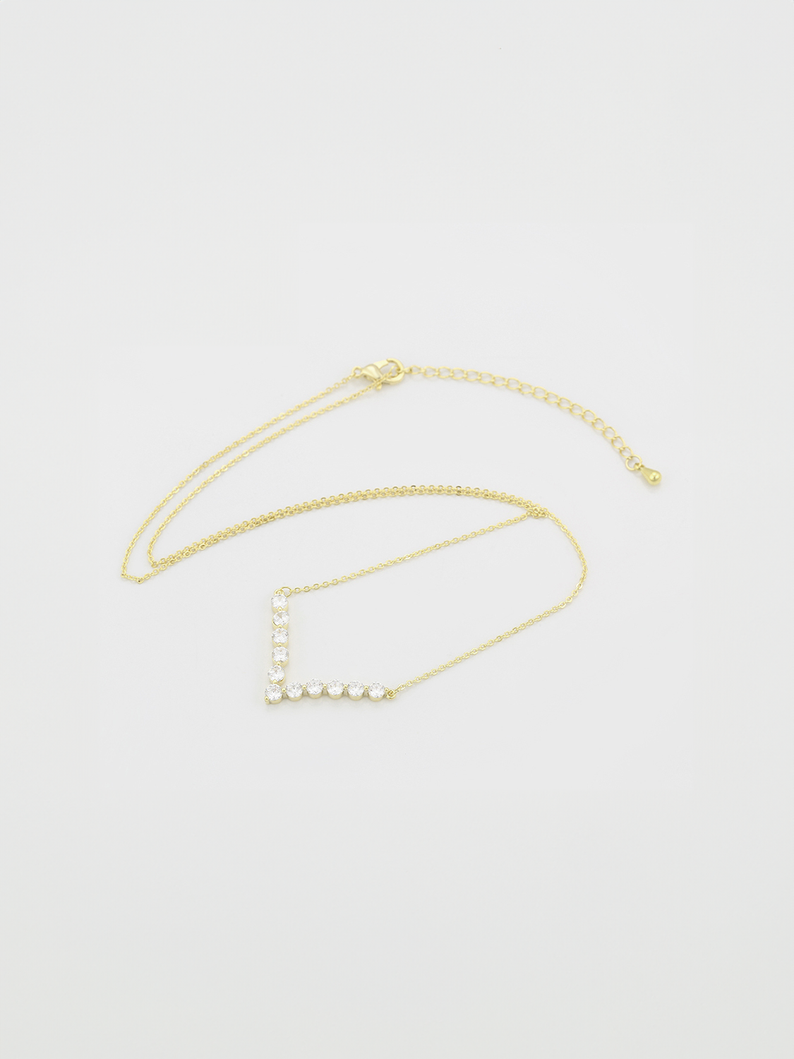 Αναδείξτε την κομψότητα και τη λάμψη σας με το κολιέ "Radiant Vibe". Το κολιέ διαθέτει εντυπωσιακές συνθετικές πέτρες ζιργκόν (CZ) σε λαμπερό χρώμα, δημιουργώντας ένα διακριτικό και πολυτελές αποτέλεσμα. Το σχήμα "V" του κολιέ προσδίδει μοναδικότητα και φινέτσα, ιδανικό για να προσθέσει μια πινελιά κομψότητας σε κάθε σας εμφάνιση.