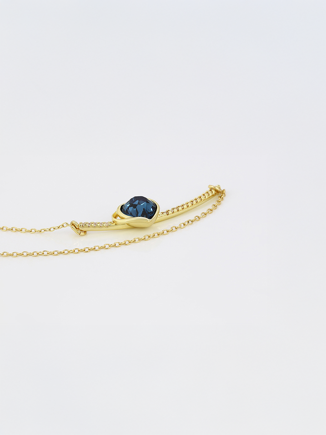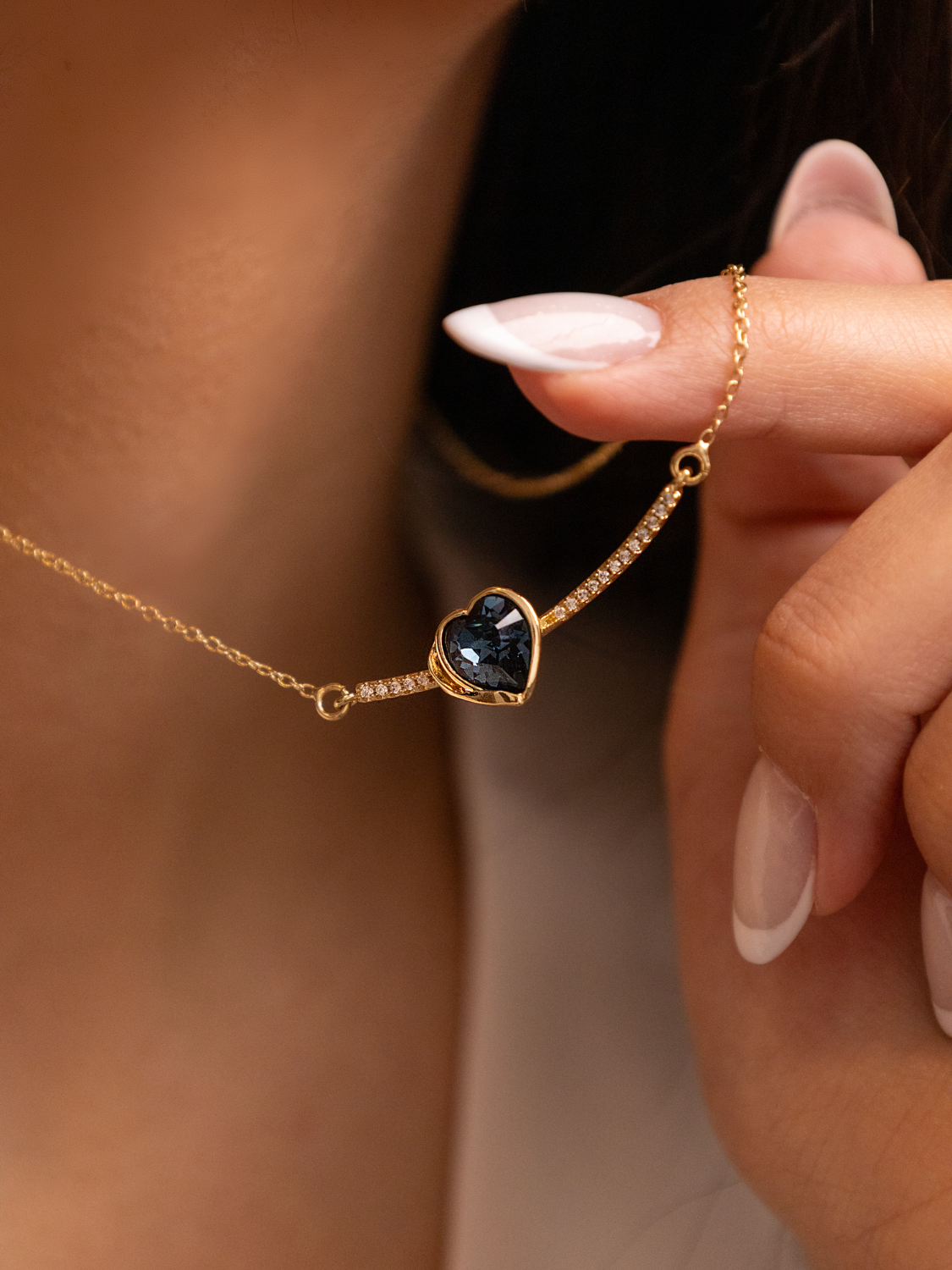 Το Midnight Heart είναι ένα ρομαντικό και εκλεπτυσμένο κολιέ που αιχμαλωτίζει την καρδιά με την πρώτη ματιά. Το εντυπωσιακό μπλε κρυστάλλινο σε σχήμα καρδιάς στοιχείο αγκαλιάζεται από λεπτή επίχρυση αλυσίδα και διακριτικά ζιρκόν κατά μήκος της καμπυλωτής βάσης, προσδίδοντας λάμψη και κομψότητα. Ιδανικό για ιδιαίτερες περιστάσεις, δώρα αγάπης ή για να προσθέσεις μία πολυτελή πινελιά σε κάθε εμφάνιση.