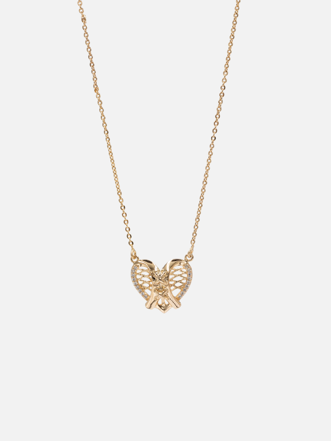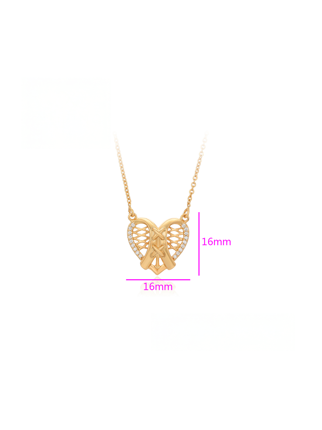 Women's Necklace Gold Color Heart with White Zircons